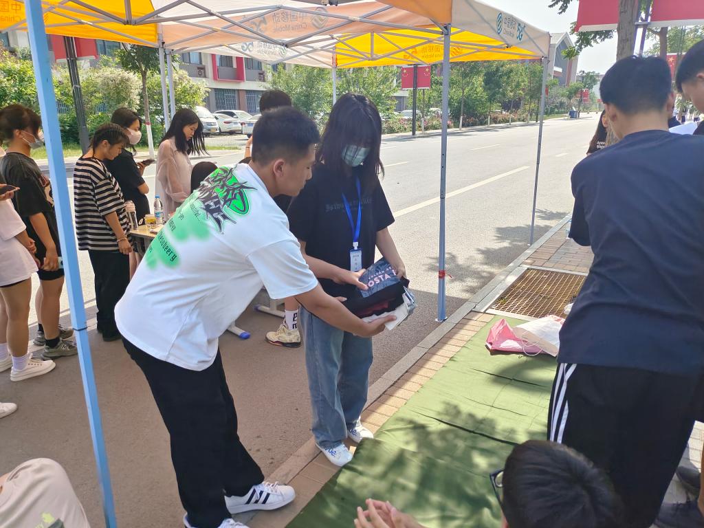 活动前,会计系青年志愿者们在梅、兰宿舍楼之间做好准备,设置物品登记处、物品存放区,保证各项工作的有效推进。活动开始,学生积极响应,不惧炎热的天气,在登记处前有序排起队,依次进行信息登记,将衣物送到志愿者手上。志愿者向同学们宣传这次志愿活动的意义,并对学生捐赠的衣物进行分类整理。