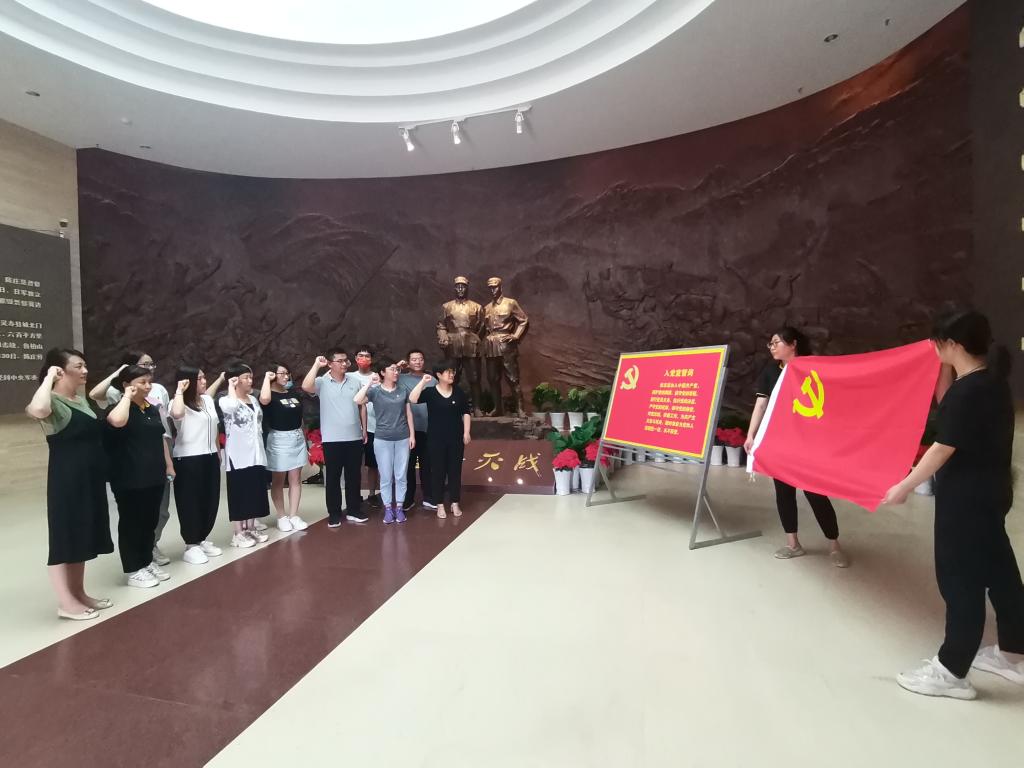 “筑美乡村 艺路向阳”社会实践小分队又来到灵寿县陈庄歼灭战旧址,参观了陈庄歼灭战陈列馆(抗大二分校纪念馆),在陈列馆大厅里全体党员面对党旗,集体宣誓,重温入党誓词。认真倾听讲解员讲述革命先辈们不畏艰险、英勇战斗的感人事迹,陈庄歼灭战被中共中央誉为抗日战争相持阶段敌后抗战的一次“模范歼灭战”。讲解员还详细介绍了抗大二分校,馆内存放的历史图片和文物,生动形象地再现了抗大二分校的历史风貌和办学历程。在追溯红色记忆、挖掘红色故事、体悟红色文化中引导广大党员和青年学生学史明理、学史增信、学史崇德、学史力行。