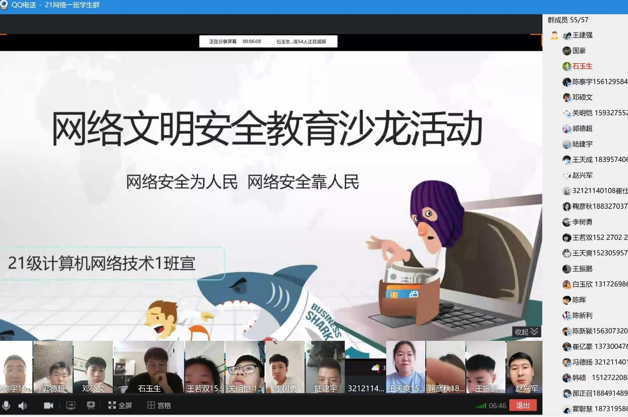 2022年国家网络安全宣传周为9月5日至11日,网络与通信工程系围绕“网络安全为人民、网络安全靠人民”这一主题,开展了网络安全线上讲座、网络安全主题文化沙龙和“网络安全进家庭”宣传等系列活动。