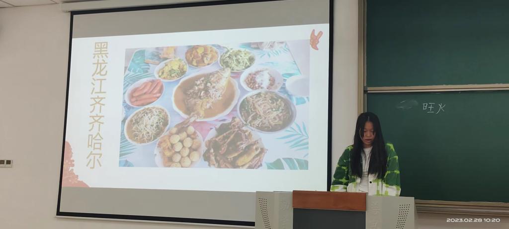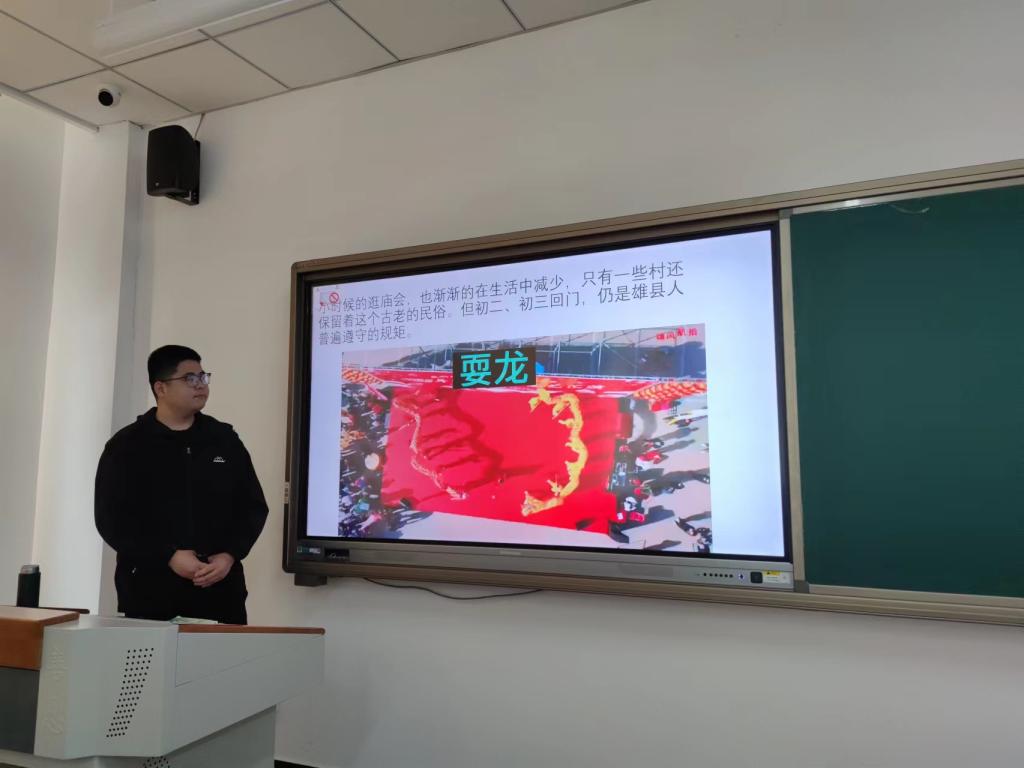 来自五湖四海的同学,以小组为单位,积极汇报了假期写对联、赶大集、打年货、蒸花馍、做年糕、放烟花、逛庙会、访古街、看花灯等丰富多彩的春节活动,并将家乡特色文化如山西烧旺火、陕西斗鼓、安徽五禽戏、井陉拉花、雄县耍龙、正定高照、吴桥杂技、沧县狮子舞等分享给大家,全体同学享受了一场春节特色文化大餐。有的小组展示了家乡街道夜景、农村发展新貌、社区文化墙、家人团聚等场景;还有的小组介绍了家乡的特色美食,如陕西秋腊肉、曲阳灌肠、永年酥鱼、邯郸枣糕、井陉烧饼、西河肉糕等。