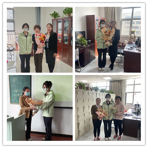 节日当天,同学们利用课间,分别为学院女教师送上了亲手制作的礼仪花束,向老师表达了节日的祝福和感恩之情,感恩老师们默默无闻、无私奉献的精神。女老师们接过蕴含着真挚祝福的鲜花,纷纷表达了对同学们的感谢,笑容在她们脸上绽放,幸福的感动在心中流淌。