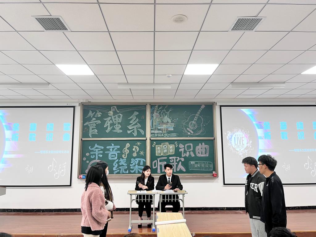为了增强同学之间的协同合作能力,充分展现新一代大学生的风采和精神,管理系于4月3日下午五点在知新楼310教室开展“余音绕梁,听歌识曲”主题活动。