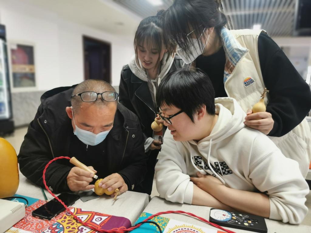 本期微课堂在为铸梦动画员工提供新中式下午茶的同时,还带来了非遗技艺“葫芦烙画”体验。铸梦员工与贡志勇老师一起体验了葫芦烙画,烙出了独属于自己的福禄。同时,在相关负责人的带领下,团队师生参观了铸梦动画的办公区域,体验了动漫企业工作环境与工作状态,亲眼目睹了3D动画的制作流程。带队老师还看望了在铸梦工作的往届毕业生,了解了他们的工作、学习和生活情况。