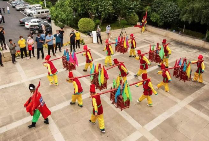 厚植于太行山文化带,平山有着丰厚的文化底蕴和丰富的非物质文化遗产,流传于平山县北冶乡天桂山一带的“抬皇杠”就是其中之一。据资料记载,“北冶抬皇杠”是源于运送修建崇祯皇帝避难行宫物品时一路行走中进行的民间舞蹈,极具当地民俗特色,迄今有三百多年的历史,已被列入省级非物质文化遗产名录,成为一种活态的文化载体。每年的春节、庙会和重大庆典活动时,世代沿袭的传统艺人都会献艺表演,深受广大群众欢迎。