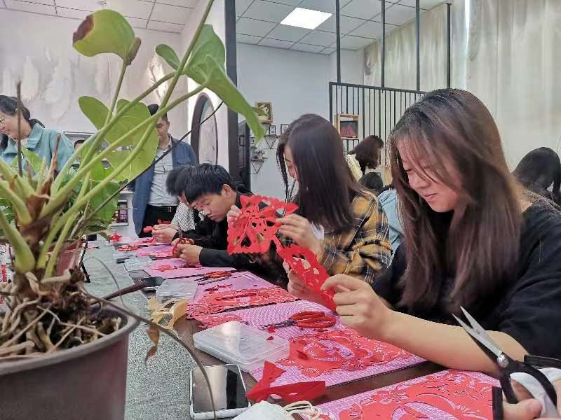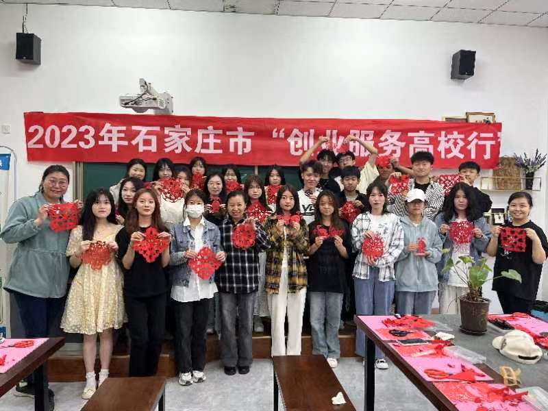 5月9日上午,由石家庄市人力资源和社会保障局主办,石家庄市就业服务中心承办的2023年石家庄市“创业服务高校行”活动在传媒艺术系王丽云剪纸技术技能大师工作室举行。