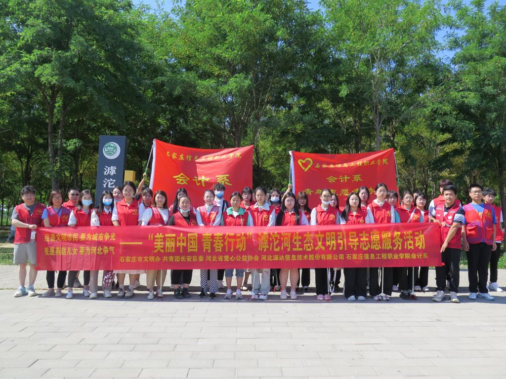 为积极引导广大群众追求文明健康的生活方式,积极参与生态文明建设,让绿水青山就是金山银山理念厚植于广大群众心中,营造洁净的宜居环境,6月10日,会计系与石家庄市文明办、共青团长安区委、河北省爱心公益协会、河北源达信息技术股份有限公司在滹沱河南岸体育大街与复兴大街中间路段联合举办“滹沱河生态文明引导”志愿服务活动。