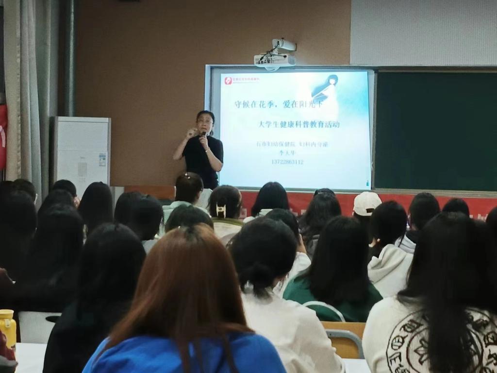 为提高大学生自我保护意识,普及大学生青春健康知识,呵护大学生生理心理健康,10月17日,石家庄市卫健委药具管理中心与石家庄市妇幼保健院联合针对大学生群体开展的“守候在花季 爱在阳光下”健康知识讲座在传媒艺术系知新8号楼108教室顺利举办。此次活动特别邀请石家庄市妇幼保健院的李天华主任为传媒艺术系师生科普健康知识。传媒艺术系教师代表及2023级全体女生宿舍长聆听了本次讲座。