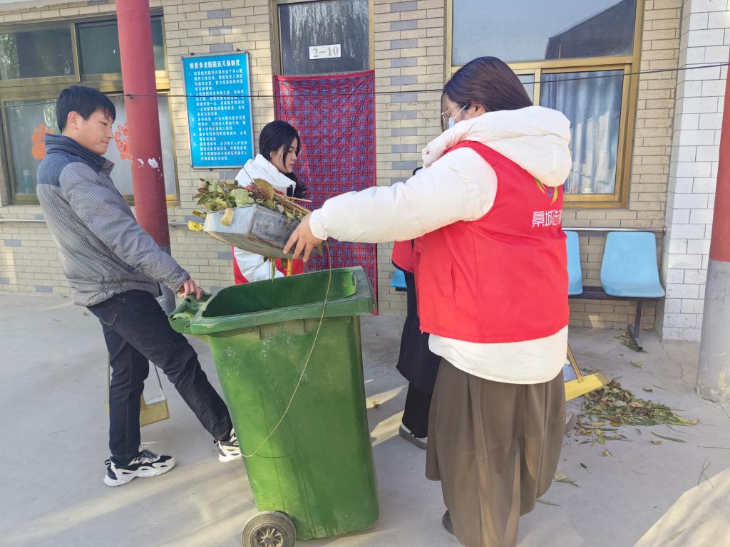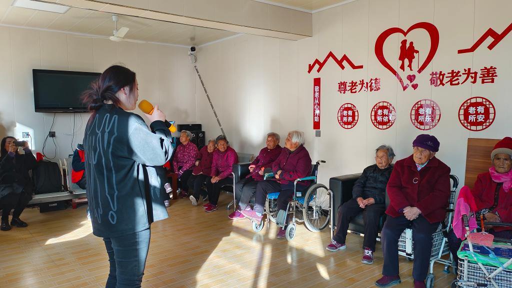 演出结束后,志愿者搀扶着老人们来到小广场晒太阳。他们亲切地拉着老人们的手,陪老人们拉拉家常、谈谈过去,在与老人的聊天中倾听他们的经历与人生感悟。志愿者们还通过环境清扫、帮助整理内务卫生等方式,为老人们送去温暖和安慰。