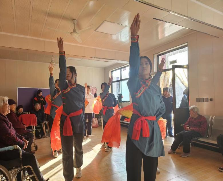 活动中,志愿者们精心为老人们准备了蒙古舞《白马》、歌曲《萱草花》、小合唱《感恩的心》等文艺节目,将对老人们浓浓的关爱之情融入表演当中,赢得了老人们的阵阵掌声,活动现场充满欢声笑语。