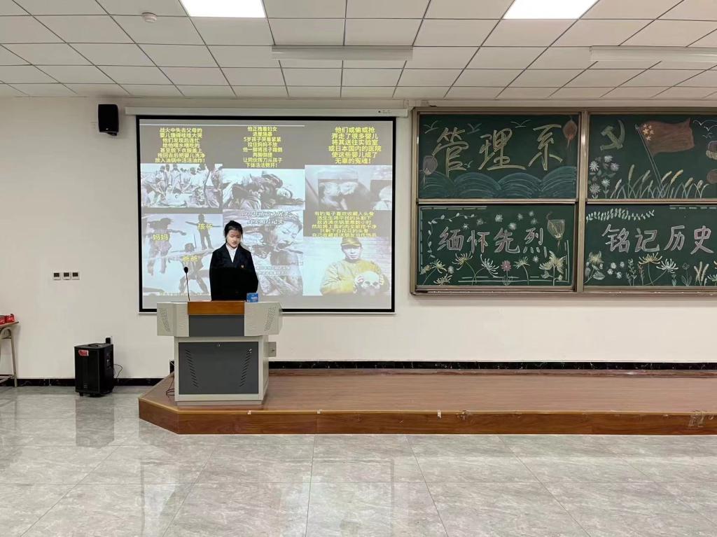 为加强学生爱国主义教育,12月12日下午,在第十个南京大屠杀死难者国家公祭日来临之际,管理系在知新2号楼310室举办“勿忘国耻 吾辈自强”国家公祭日主题教育活动。