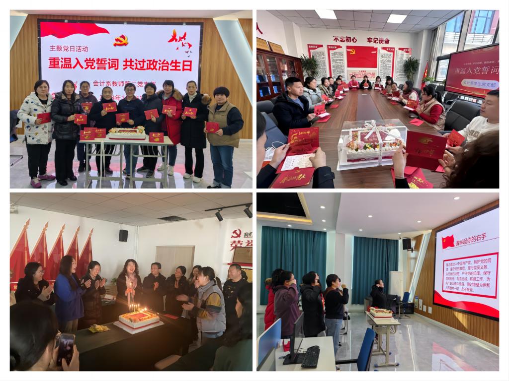 12月21日,会计系党总支以支部为单位组织开展“重温入党誓词 共过政治生日”主题党日活动,旨在强化党员的身份意识和责任意识,进一步激发党员的党性热情。