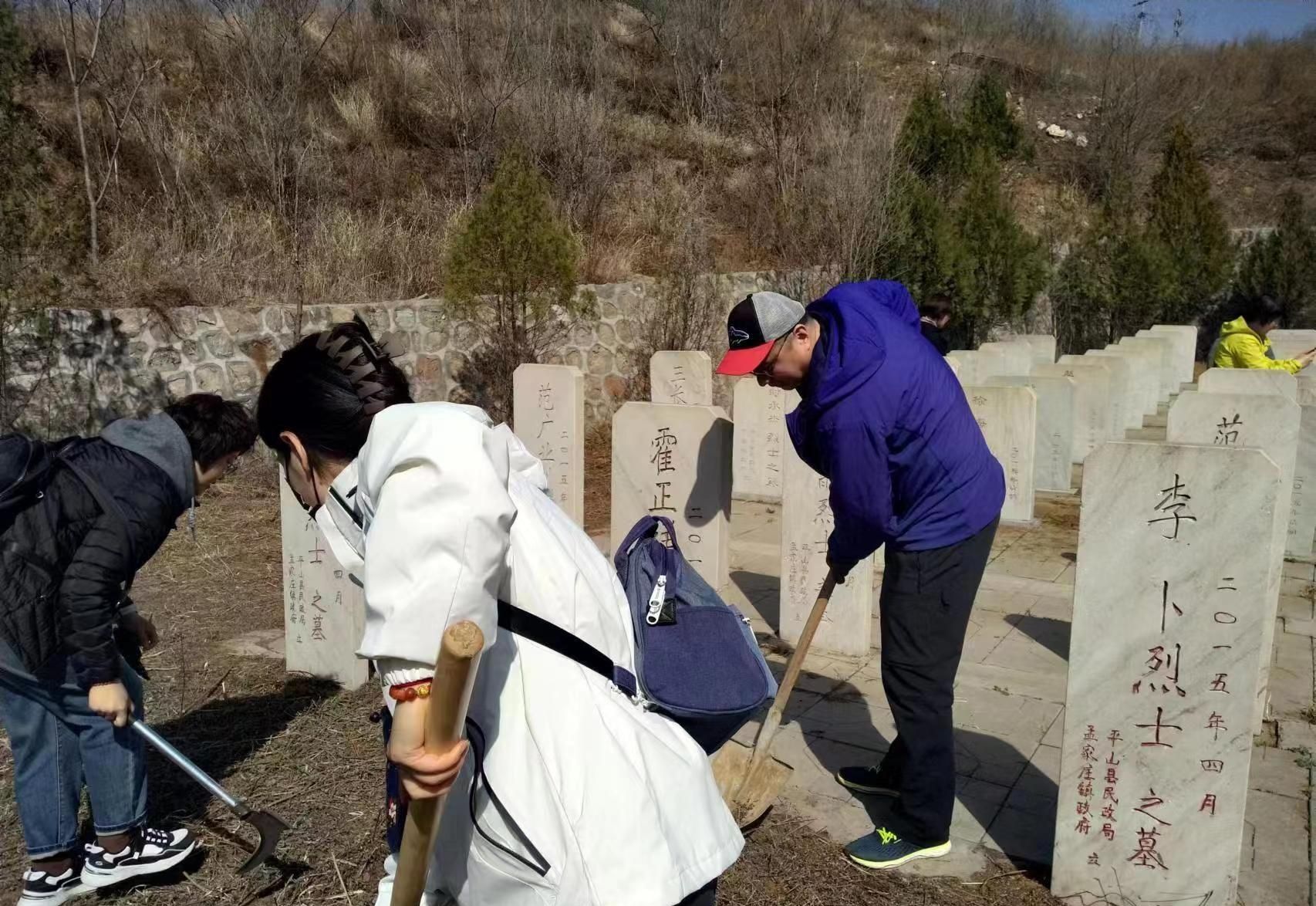 青山埋忠骨,鲜花寄哀思。为缅怀革命先烈,继承光荣传统,3月22日,基础部党总支一行16人,在党总支书记张娜的带领下来到平山县下刘家坪村开展祭扫活动,祭奠抗日英烈。