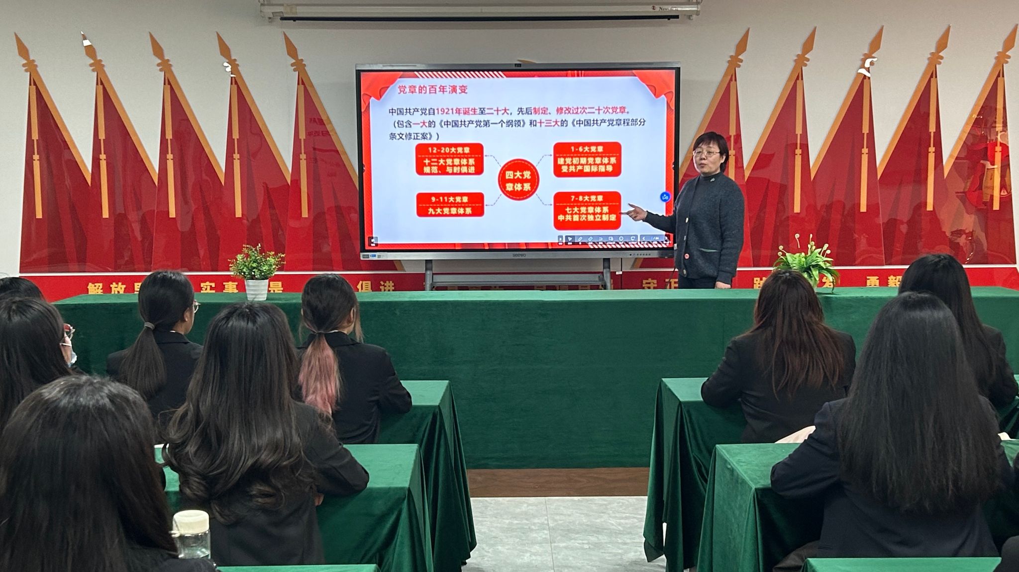 3月21日,会计系副主任沈丽带领同学们学习了解中国共产党的性质、宗旨、指导思想。她指出,应自觉做共产主义远大理想和中国特色社会主义共同理想的坚定信仰者和忠实实践者,在全面建设社会主义现代化国家过程中贡献青春力量。