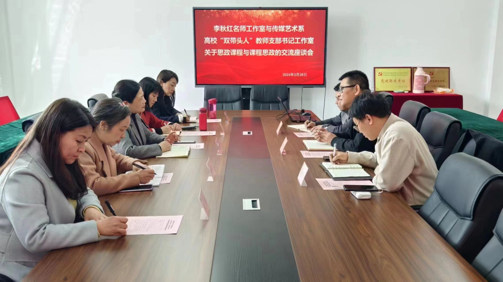 3月28日,马克思主义学院李秋红名师工作室与传媒艺术系高校“双带头人”支部书记工作室相关人员,在传媒艺术系党员活动室开展思政课程与课程思政交流座谈。马克思主义学院院长李秋红、传媒艺术系副主任许景涛参加座谈。