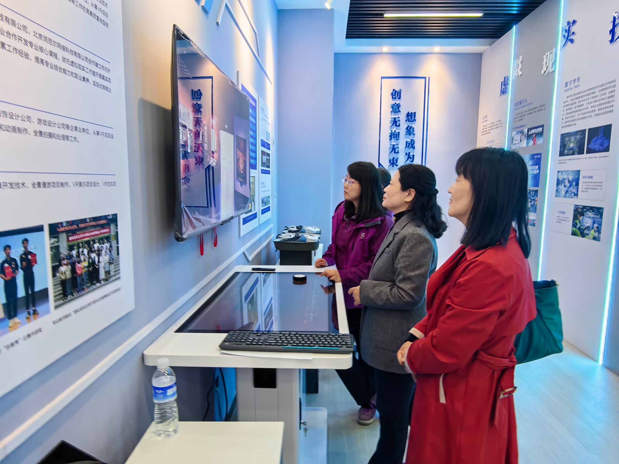 座谈会后,传媒艺术系教师带领马克思主义学院教师参观了微观装配实训室、市高校党建“双带头人”支部书记工作室、CMF色彩与新材料工作室和VR云展厅等实训室。