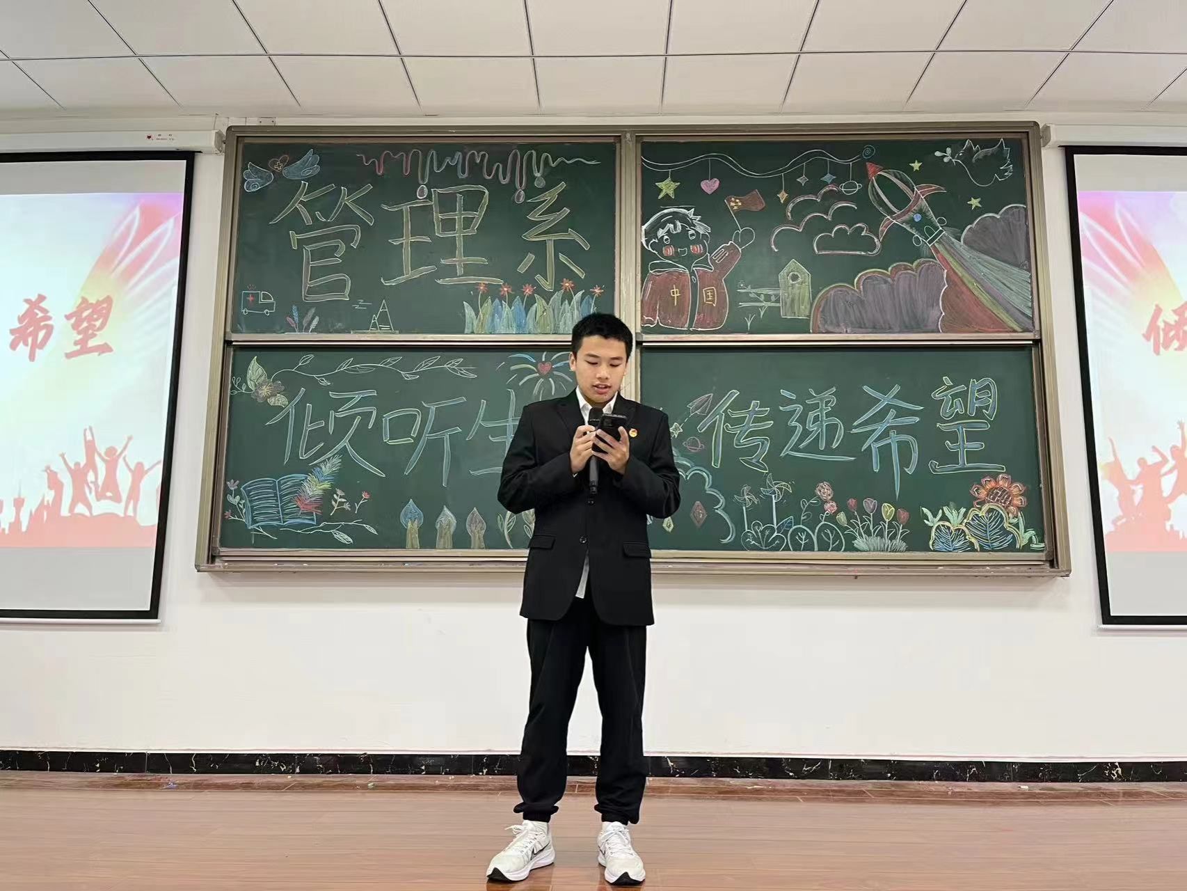 为进一步推广“人道、博爱、奉献”的红十字精神,传承社会主义核心价值观,同时展现大学生的青春风采,4月29日,管理系在知新二号楼310教室开展“倾听生命,传递希望”演讲活动。