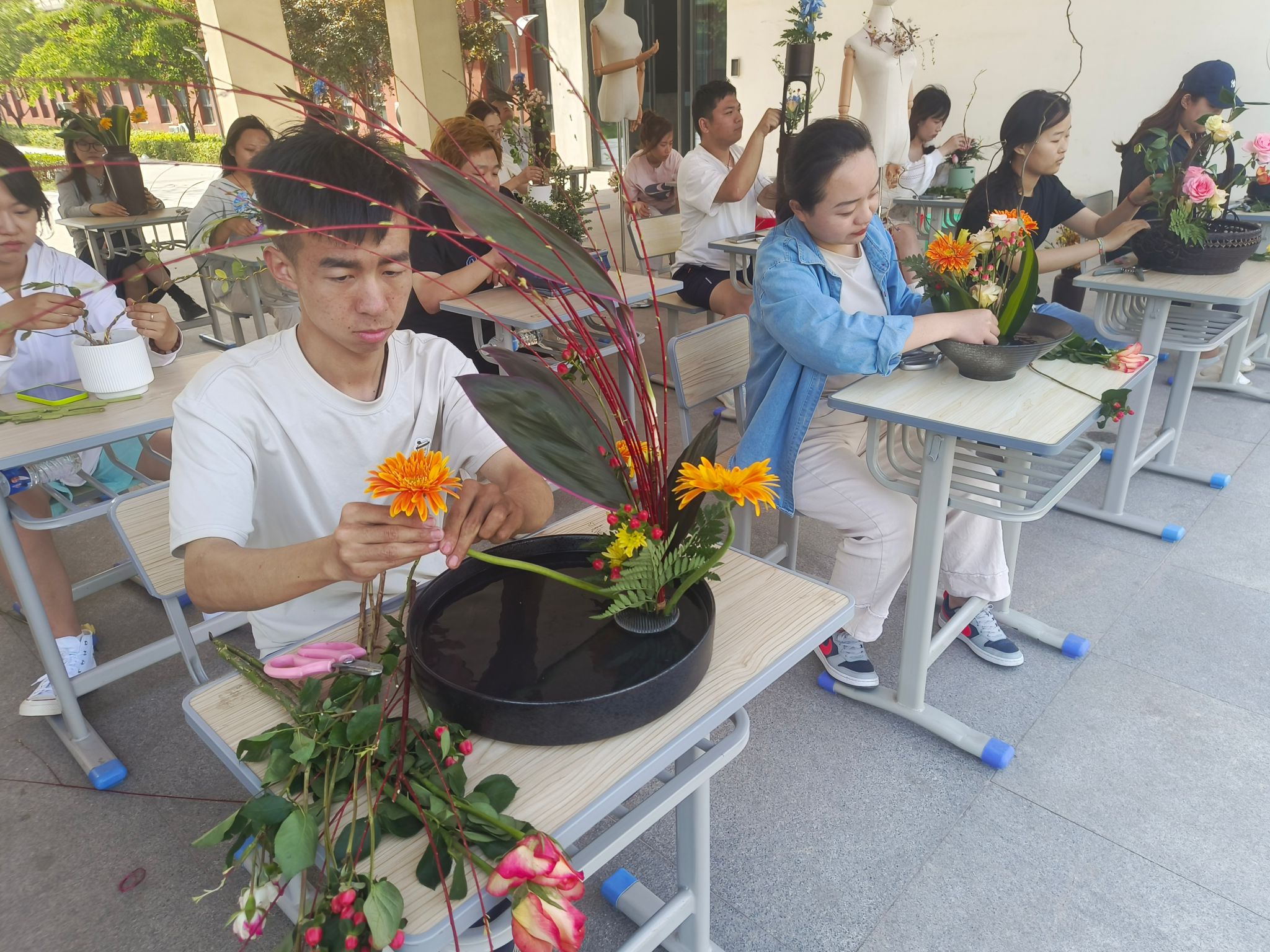 在活动现场,还设置了互动环节,邀请同学们亲手体验花艺制作的乐趣。有专业学生进行指导,大家纷纷拿起剪刀、花束,认真地修剪、搭配,创作出自己的花艺作品。活动还设置了展示区,在展示现场,专业学生对作品进行了点评。各种花艺作品琳琅满目,让人赞不绝口,流连忘返。