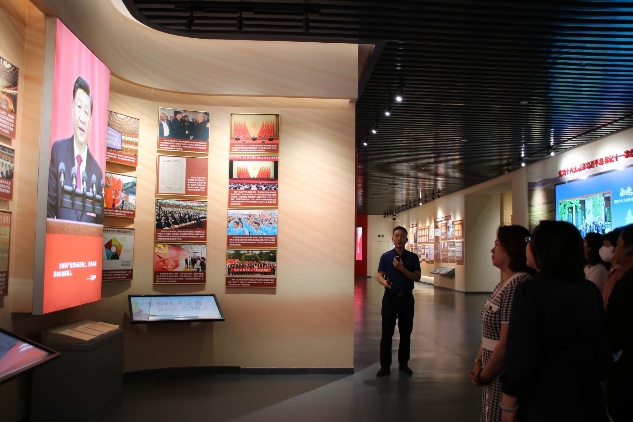 党员们在讲解员的引导下认真地观看了警示教育展览。大量的图片、视频、数据材料,展示了党的十八大以来全面从严治党和全面推进党风廉政建设、反腐败斗争取得的显著成效。展览内容既有党的路线方针政策和党内法规解读,又有近几年典型案例剖析。一组组鲜活生动的图文、一个个触目惊心的案例,给党员干部带来了全方位、多角度、立体化、最直接的视觉冲击和心灵震撼。