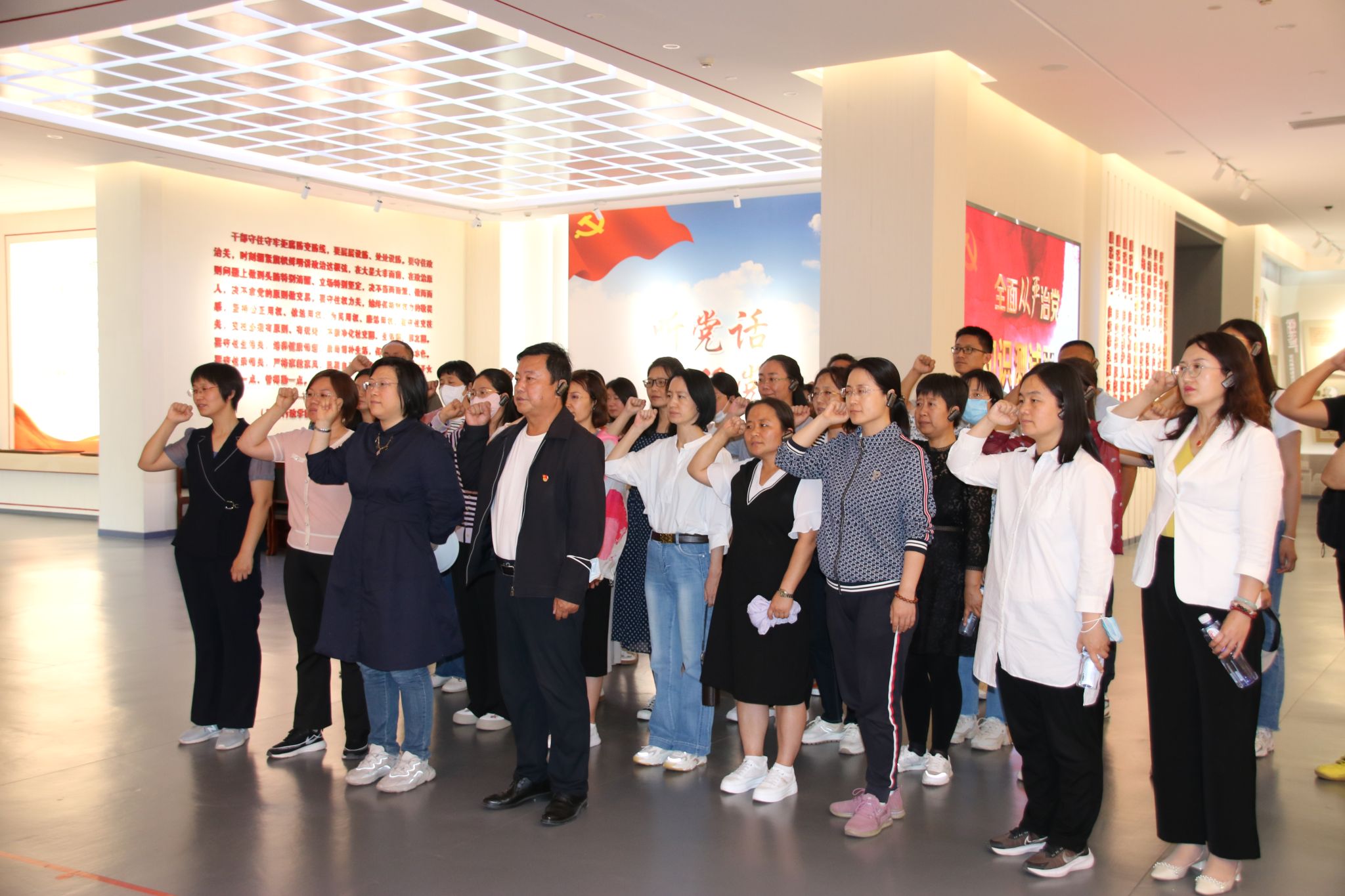 参观结束后,全体党员在党旗下重温入党誓词。党员们铿锵有力的宣誓声响彻大厅,所有人都深受感染、倍受教育。大家纷纷表示,在今后的工作中,要更加严格地要求自己,更加严格地遵守党章、党规、党纪,牢固树立底线意识和红线意识,为党育人、为国育才。