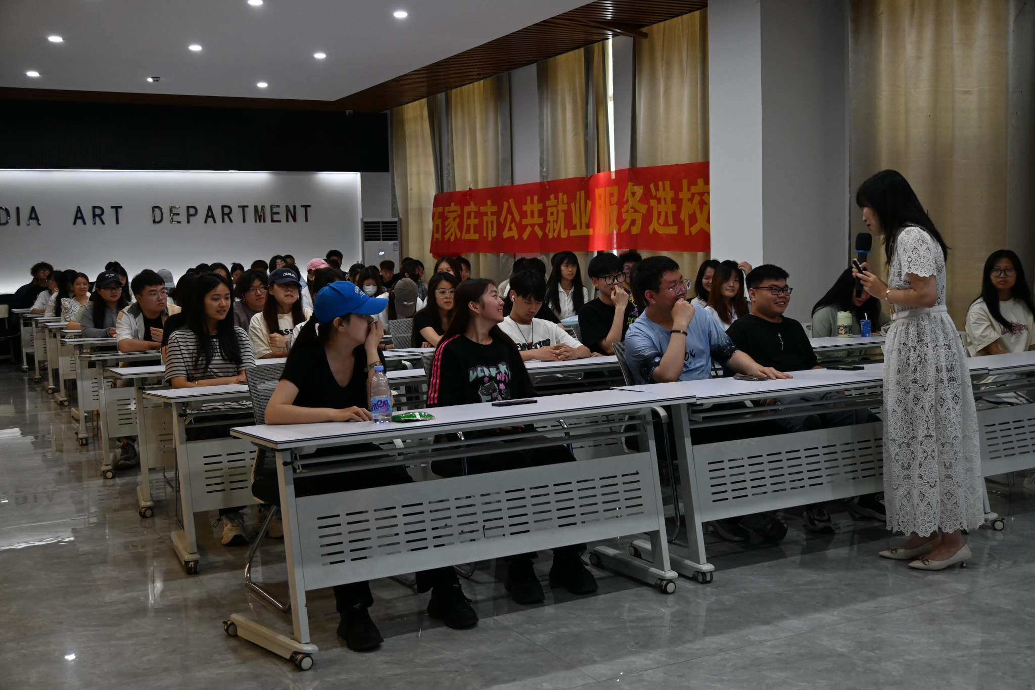 为激发广大青年创新活力,提升大学生新媒体技能运用能力,更好地让大学生把握新媒体平台的创业及就业机会,5月29日,传媒艺术系特邀石府餐饮执行董事、问道传媒河北分公司总裁李佳甜女士为同学们开展主题讲座“从0开始做抖音”。传媒艺术系近百名同学前来聆听。