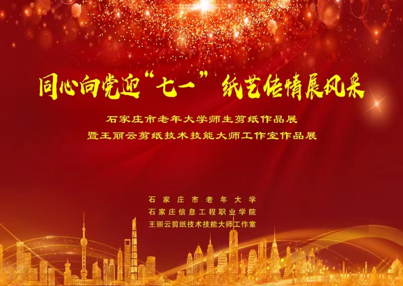 为庆祝中国共产党成立103周年,弘扬党的光辉历程和优良传统,石家庄市老年大学联合学院王丽云剪纸技术技能大师工作室,特别策划举办“同心向党迎‘七一’ 纸艺传情展风采”剪纸作品展。