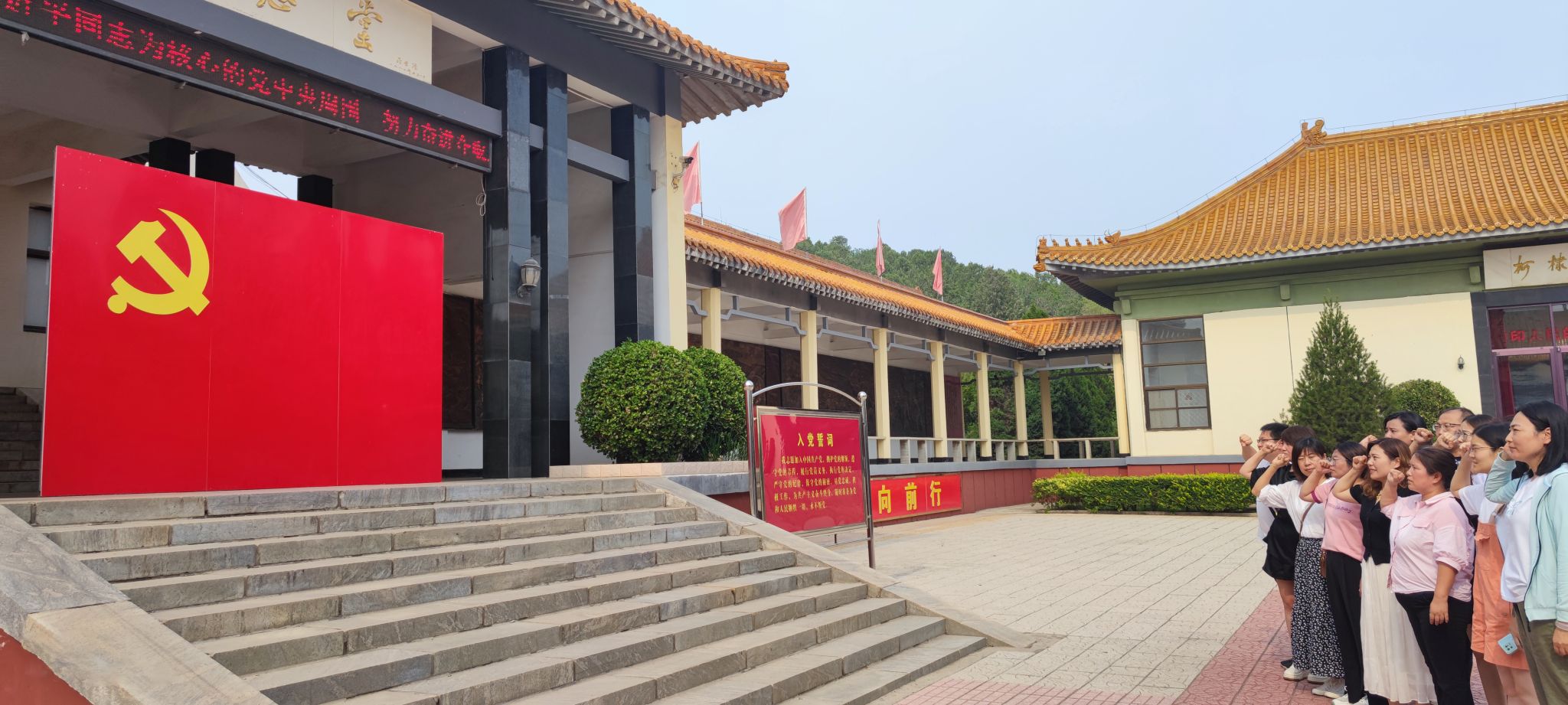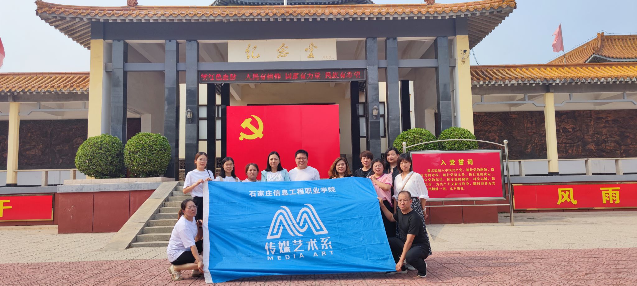 党建引领初心,赓续红色血脉。7月10日,传媒艺术系“艺路向阳”实践团队赴唐县白求恩柯棣华纪念馆,缅怀先烈、铭记历史。通过参观,了解白求恩、柯棣华大夫生前工作及光辉的一生,实践团队成员被两位国际主义战士的高尚情操、精湛医术、高度的责任心、满腔的工作热忱和无私奉献的精神深深感动,纷纷表示,追寻英雄足迹,缅怀革命先烈,传承革命精神,要以担当实干精神践行初心和使命,进一步筑牢理想信念和思想防线。同时,大家重温入党誓词,坚定理想信念,不忘初心使命。