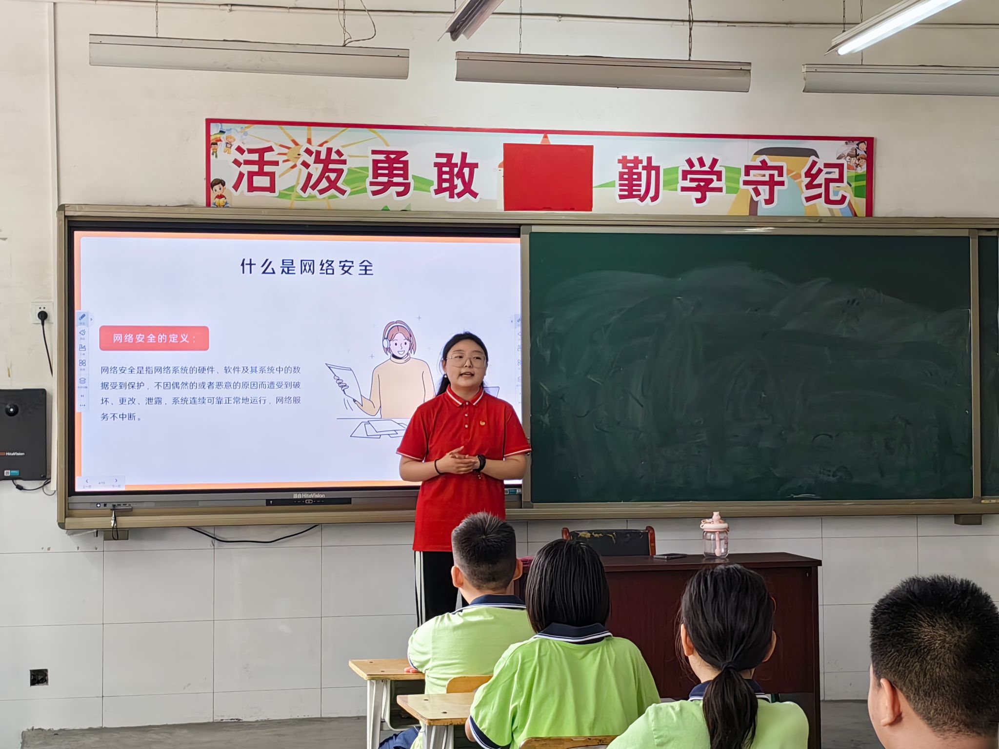 服务驻地,奉献爱心。在鲍家庄小学“思政课堂”上,队员们采用图文并茂的方式为同学们讲述红色故事,带领同学们一起“置身”于那段峥嵘岁月,深入了解中国共产党的历史。同时,结合当前青少年特点,向同学们普及未成年人法治教育、防溺水安全教育及暑期安全教育等知识,提高了青少年暑期安全自护意识和能力。