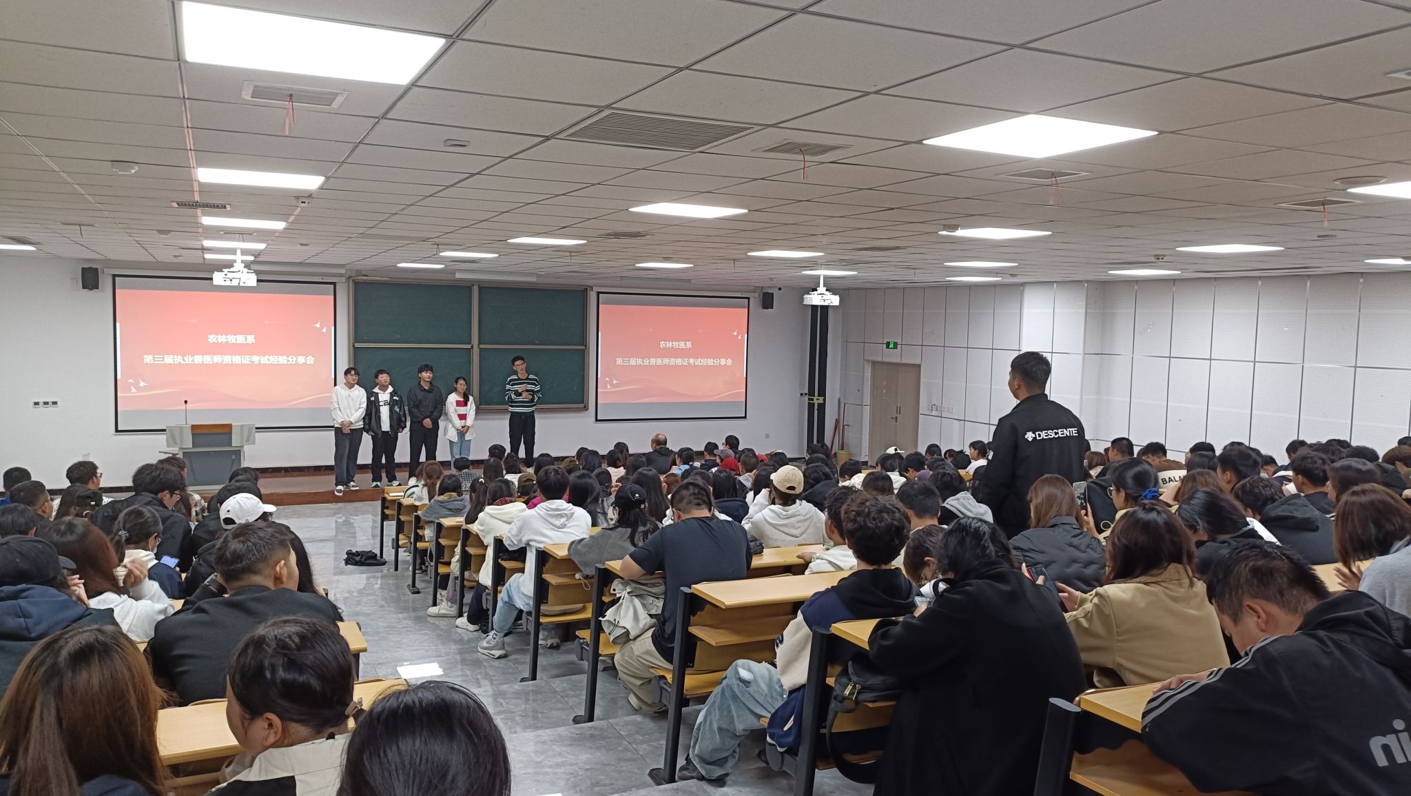 农林牧医系大一辅导员、2024级动物医疗、宠物医疗、畜牧兽医专业全体同学400余人参加本次活动。