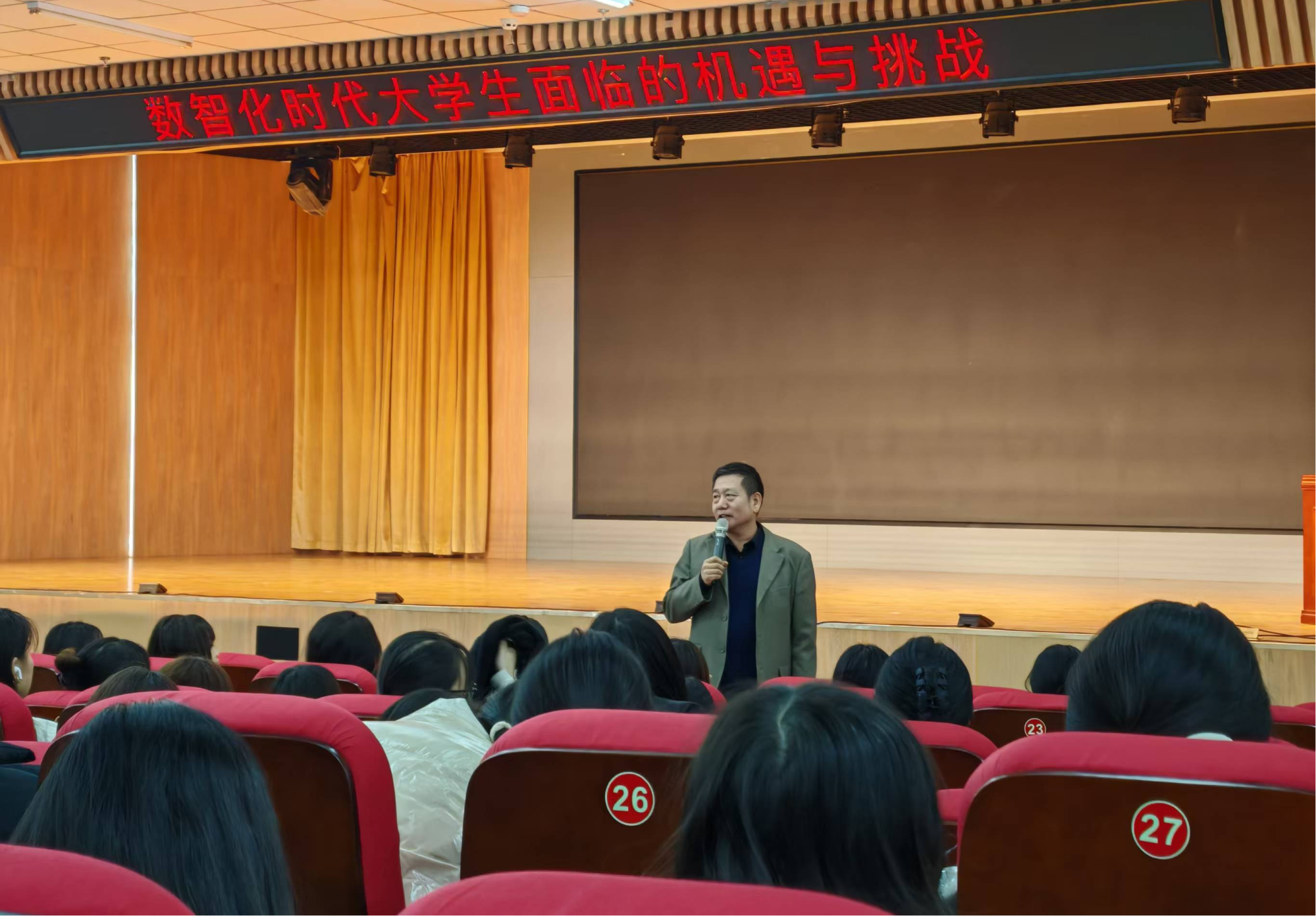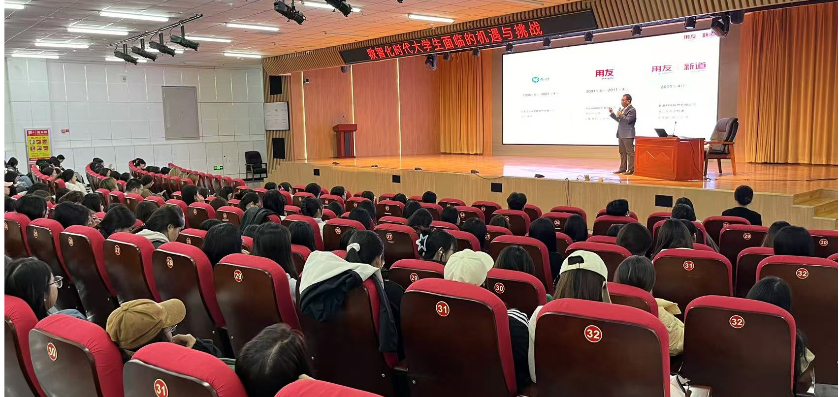 11月21日下午,一场主题为“数智化时代大学生面临的机遇与挑战”的讲座在beat365图书馆报告厅举行。本次讲座由会计系会计信息管理教研室组织策划,会计系主任李素其、会计信息管理教研室全体教师及会计系2022级部分学生代表共400余人认真听取讲座。