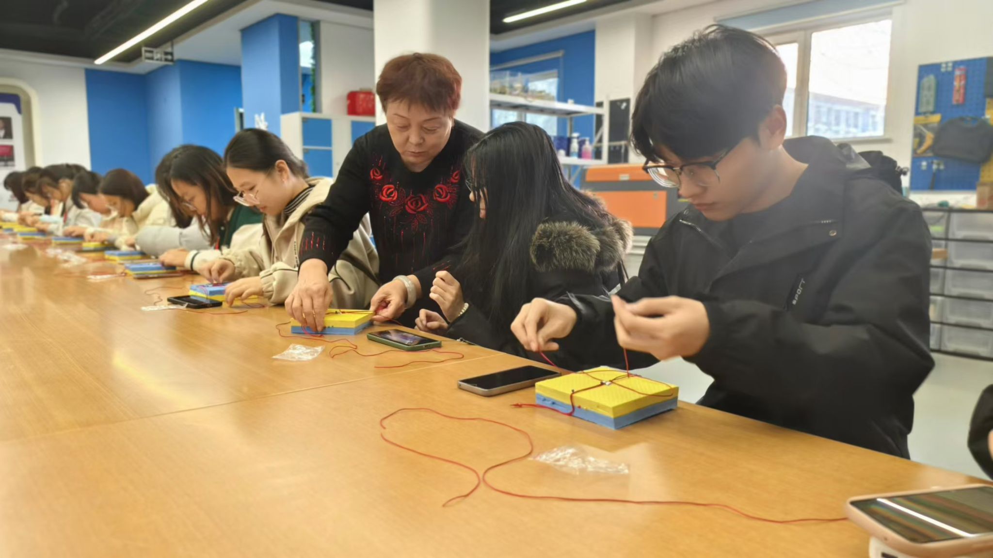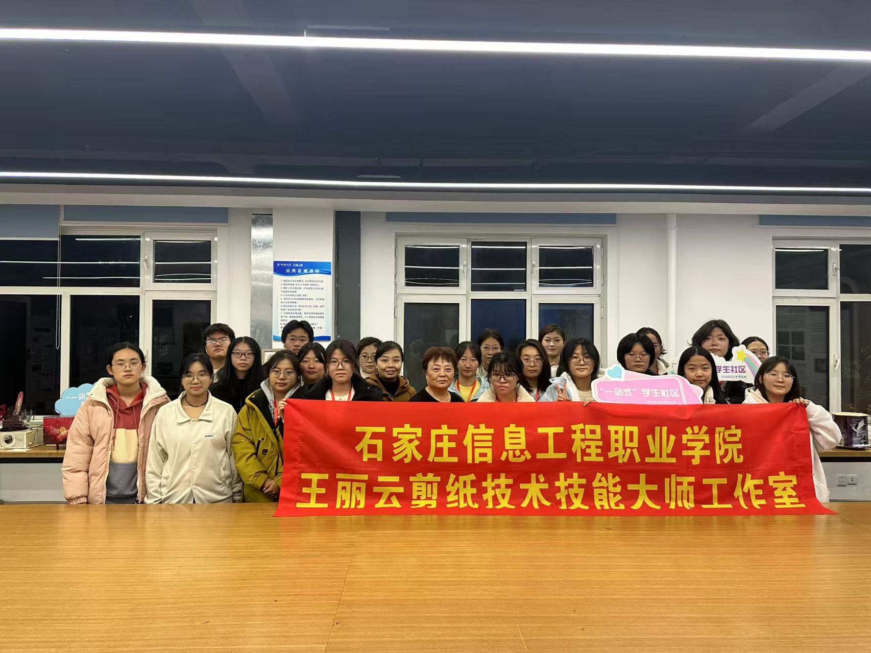 应河北师范大学学生处的邀请,11月29日晚,传媒艺术系王丽云剪纸技术技能大师工作室团队再次来到该校开展“一站式”学生社区志愿服务。