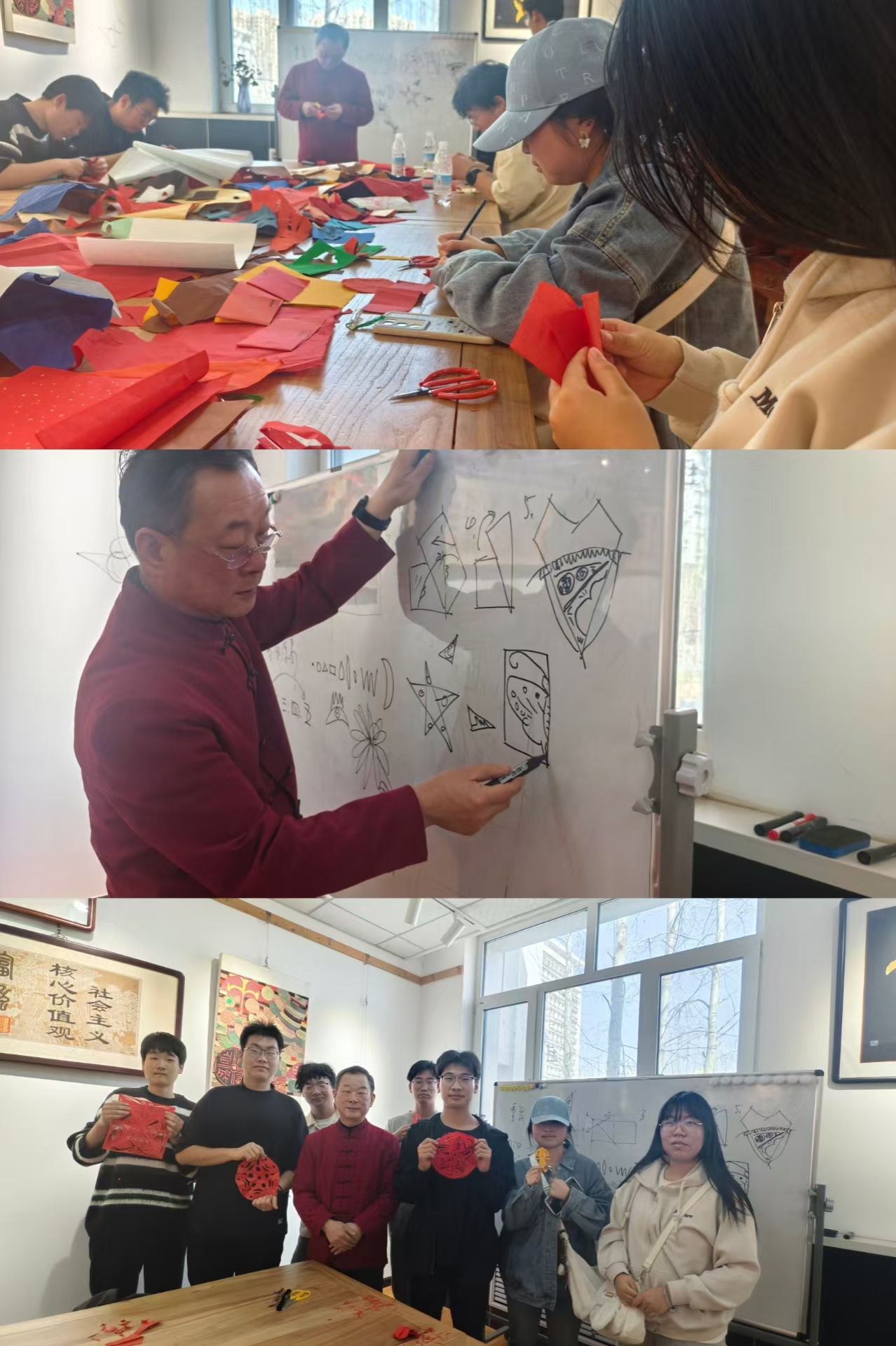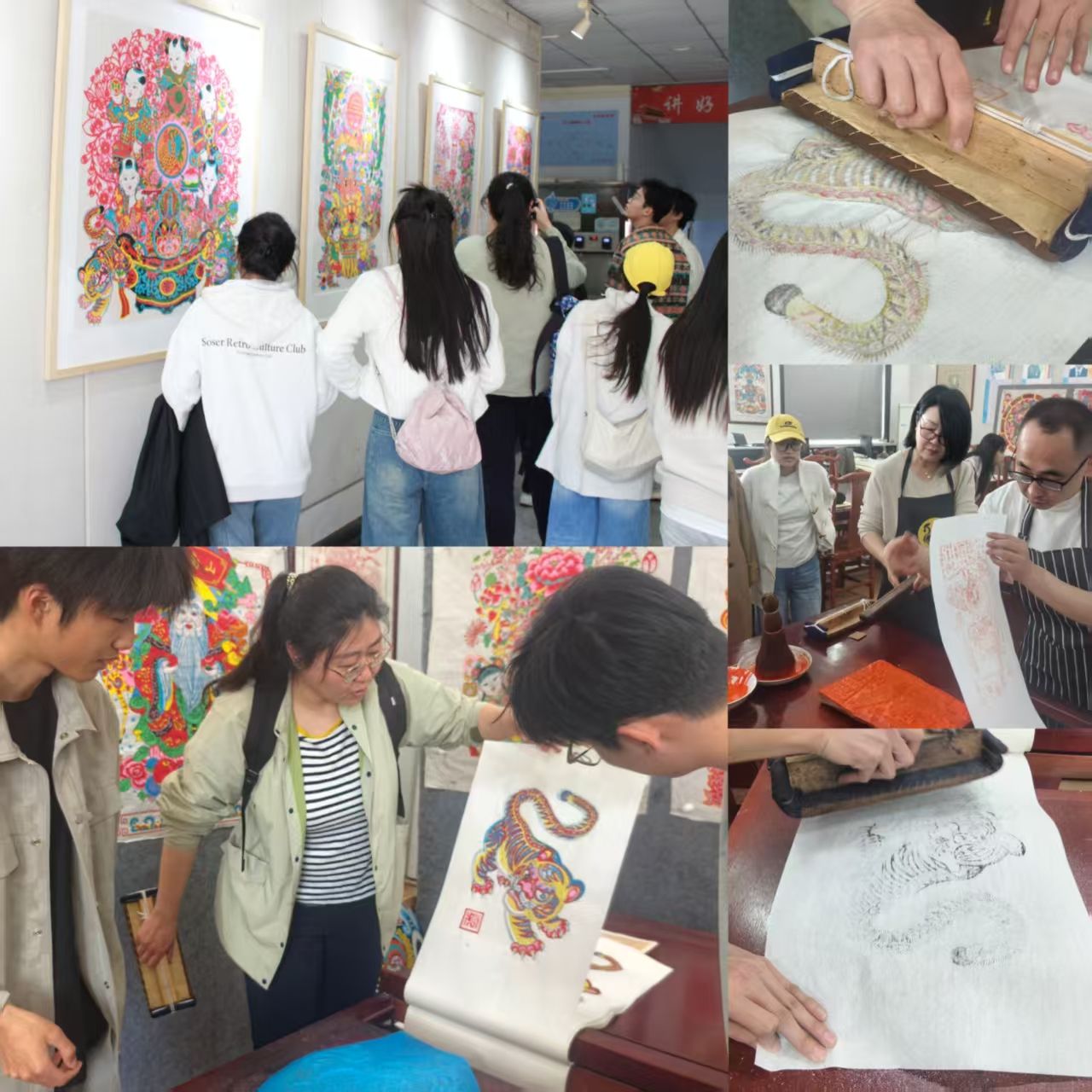 活动中,衡水市剪纸技艺传承人、河北省燕赵之星、该院剪纸大师工作室负责人秘青亚向师生们介绍了立体式剪纸、浮雕剪纸的特色。艺术与设计系专业教师手把手教学生体验了武强年画的套色版流程,经过反复练习,一幅幅套色准确,不秃、不污,四角齐全,颜色鲜艳的年画就印制完成了。