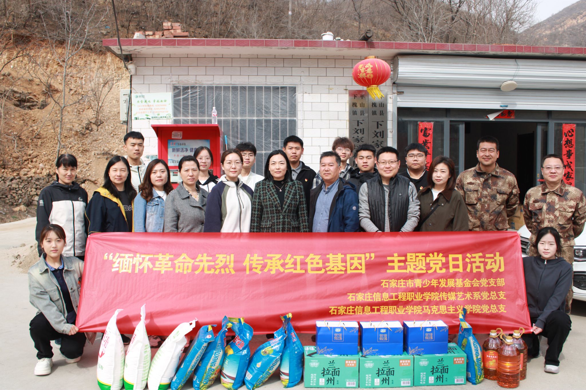 在清明节来临之际,为深植革命文化基因,践行乡村振兴使命,3月26日,传媒艺术系党总支联合马克思主义学院党总支、石家庄市青少年发展基金会党支部组织师生党员18人,赴平山县下刘坪村开展“缅怀革命先烈 传承红色基因”主题党日活动,围绕乡村振兴调研、童心关爱行动、英烈精神洗礼三大主题,推动党性教育与服务实践深度融合。