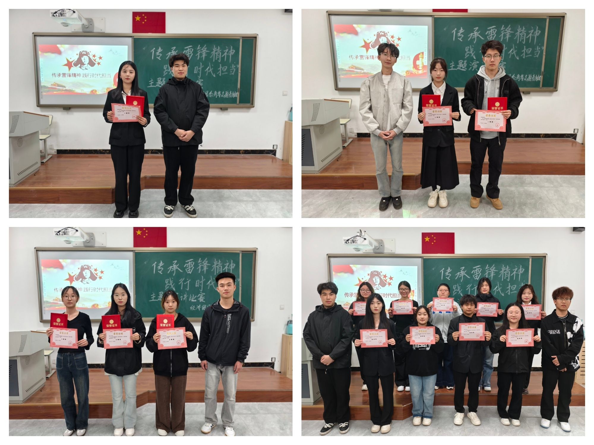进行“传承雷锋精神 践行时代担当”主题演讲比赛活动。3月27日,经济贸易系在知新5号楼225教室举办了“传承雷锋精神 践行时代担当”主题演讲比赛。比赛中,选手们围绕雷锋精神的时代内涵,结合自身经历和身边故事,用真挚的语言、饱满的情感,讲述了新时代青年如何传承和发扬雷锋精神。有的选手从雷锋的“螺丝钉精神”出发,呼吁大家在平凡的岗位上发光发热;有的选手分享了参与志愿服务的故事,展现了新时代青年的责任与担当;还有的选手以雷锋精神为指引,表达了坚定理想信念、投身祖国建设的决心。经过激烈角逐,从演讲内容、语言表达、舞台表现等多个方面进行综合评分,最终评选出了一、二、三等奖及优秀奖并颁发荣誉证书。通过比赛,广大青年进一步坚定了学习雷锋、奉献社会的信念,纷纷表示将以实际行动践行雷锋精神,争做新时代的雷锋传人。