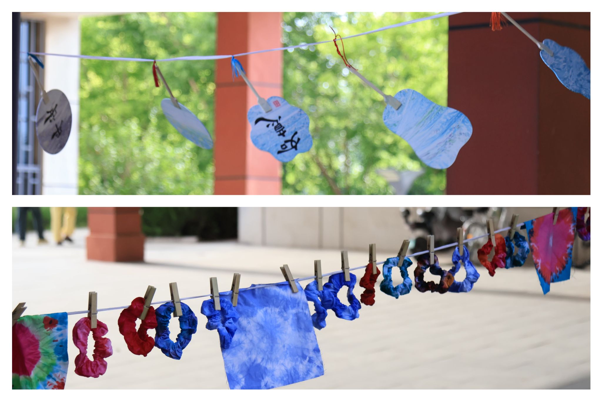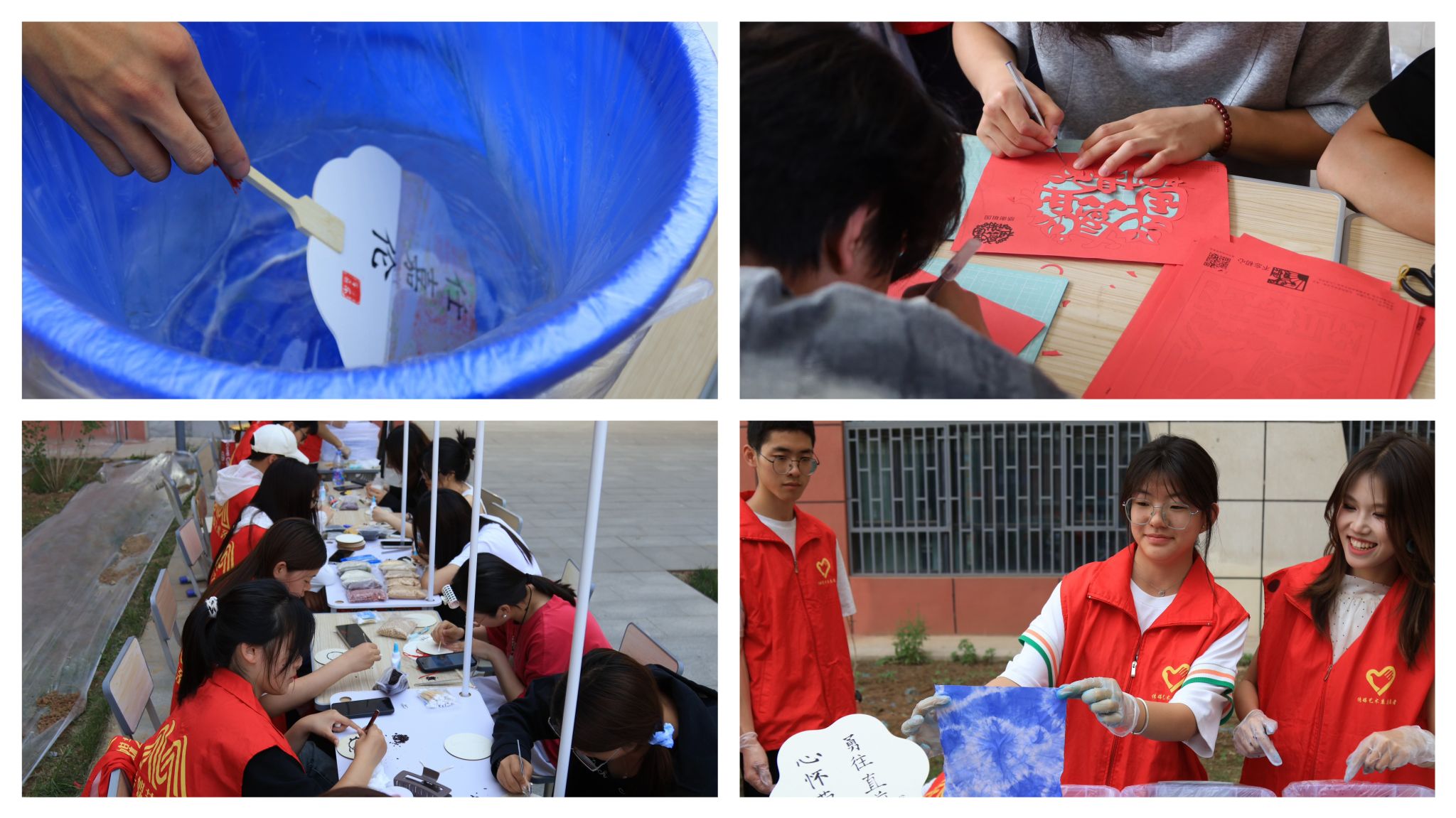 漆扇展区同样人气高涨,精美的漆扇以其独特的工艺和雅致的外观吸引了众多师生的目光。教师们纷纷拿起毛笔,在漆扇上挥毫泼墨,将自己的创意与才情融入其中,为漆扇赋予了新的文化内涵。扎染、种子画、剪纸、绳结等展区也各具特色。在扎染区,师生们学习传统扎染技法,通过捆扎、染色、拆线等步骤,创造出色彩斑斓、图案各异的扎染作品;种子画展区内,大家利用各种植物种子,巧妙拼贴出一幅幅精美的画作;剪纸区里,一把剪刀、一张红纸,在师生们的手中变幻出各种生动的图案;绳结区则让大家感受到了传统绳结艺术的精巧,师生们在编织过程中体会到了非遗文化的细腻与雅致。