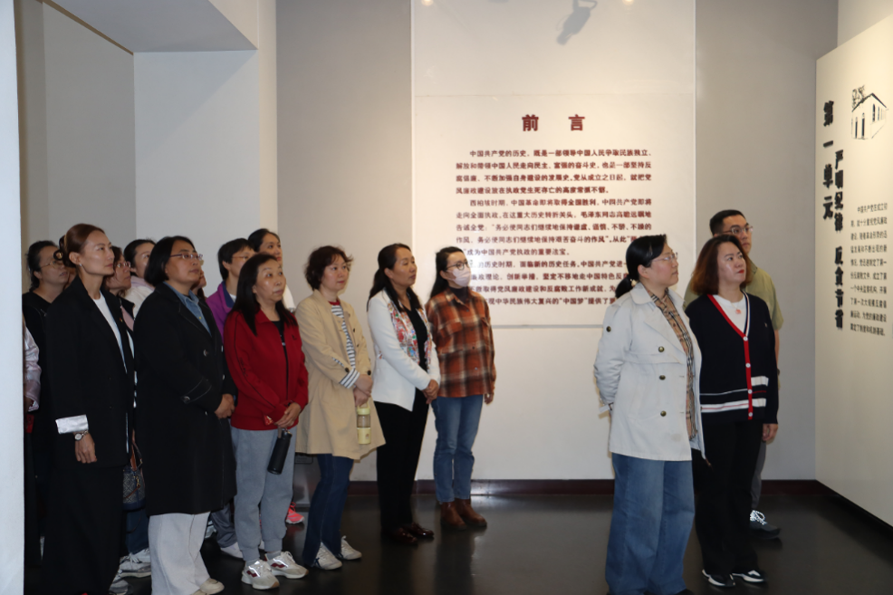 抵达西柏坡后,全体人员首先走进西柏坡廉政教育馆。在讲解员细致的解说中,同志们怀着崇敬的心情依次参观了“严明纪律、反贪节省”“民主廉洁、全心为民”“两个务必、敲响警钟”“开国新风、执政之基”等四个单元展厅,透过展厅回望中国共产党从抗战胜利、延安时期、西柏坡时期再到新中国成立后的廉政探索,使全体人员对“赶考永远在路上”的政治命题有了系统化、深层次的理解把握。