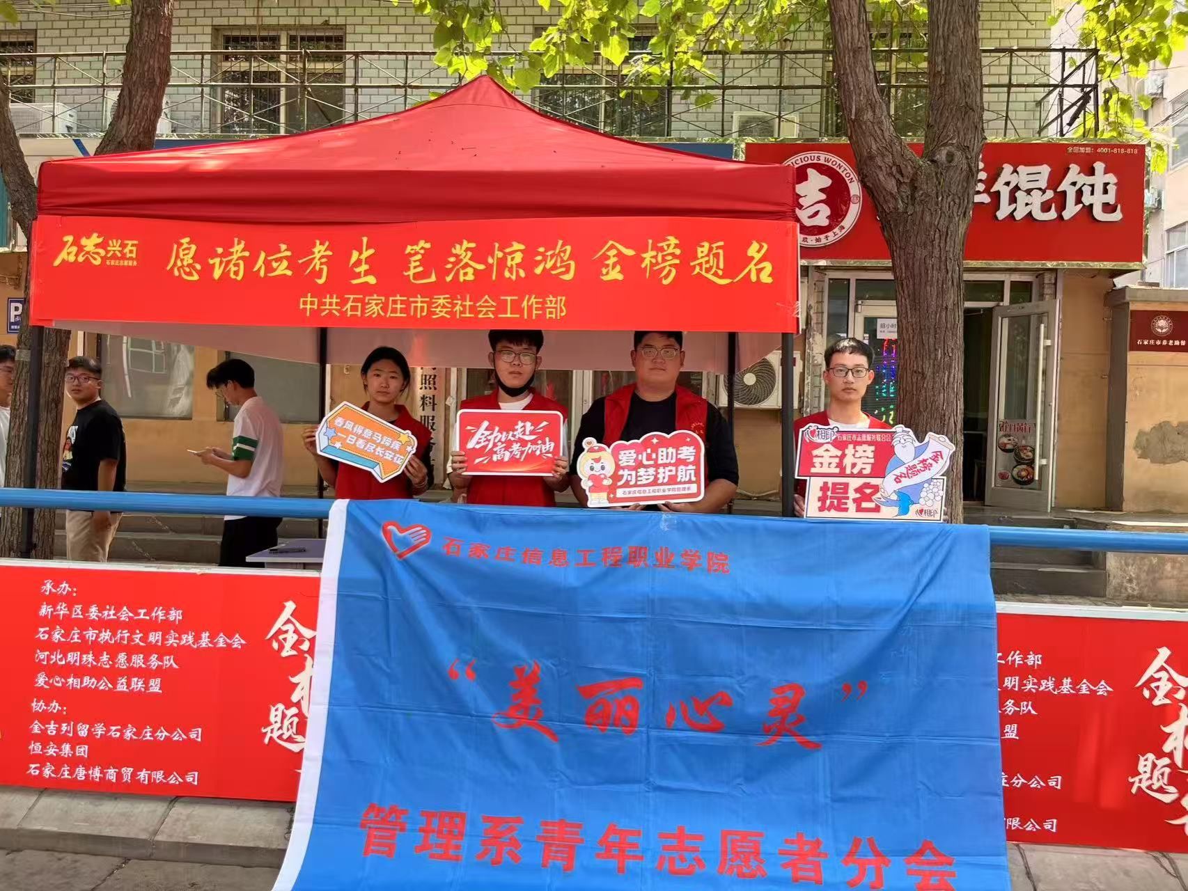 为进一步弘扬“奉献、友爱、互助、进步”的志愿服务精神,精心做好2025年我市高考志愿服务保障工作,为广大考生营造一个文明和谐、安全畅通、舒心安静的考试环境,在中共石家庄市委社会工作部、石家庄市委宣传部(文明办)、石家庄市志愿服务联合会的指导下,beat365管理系青年志愿者服务协会联合河北明珠志愿服务队在石家庄市第四十二中学开展2025年“执笔为剑战高考,青春志愿护远航”爱心助高考志愿服务活动,让“志愿红”成为考场上一道亮丽的风景线。