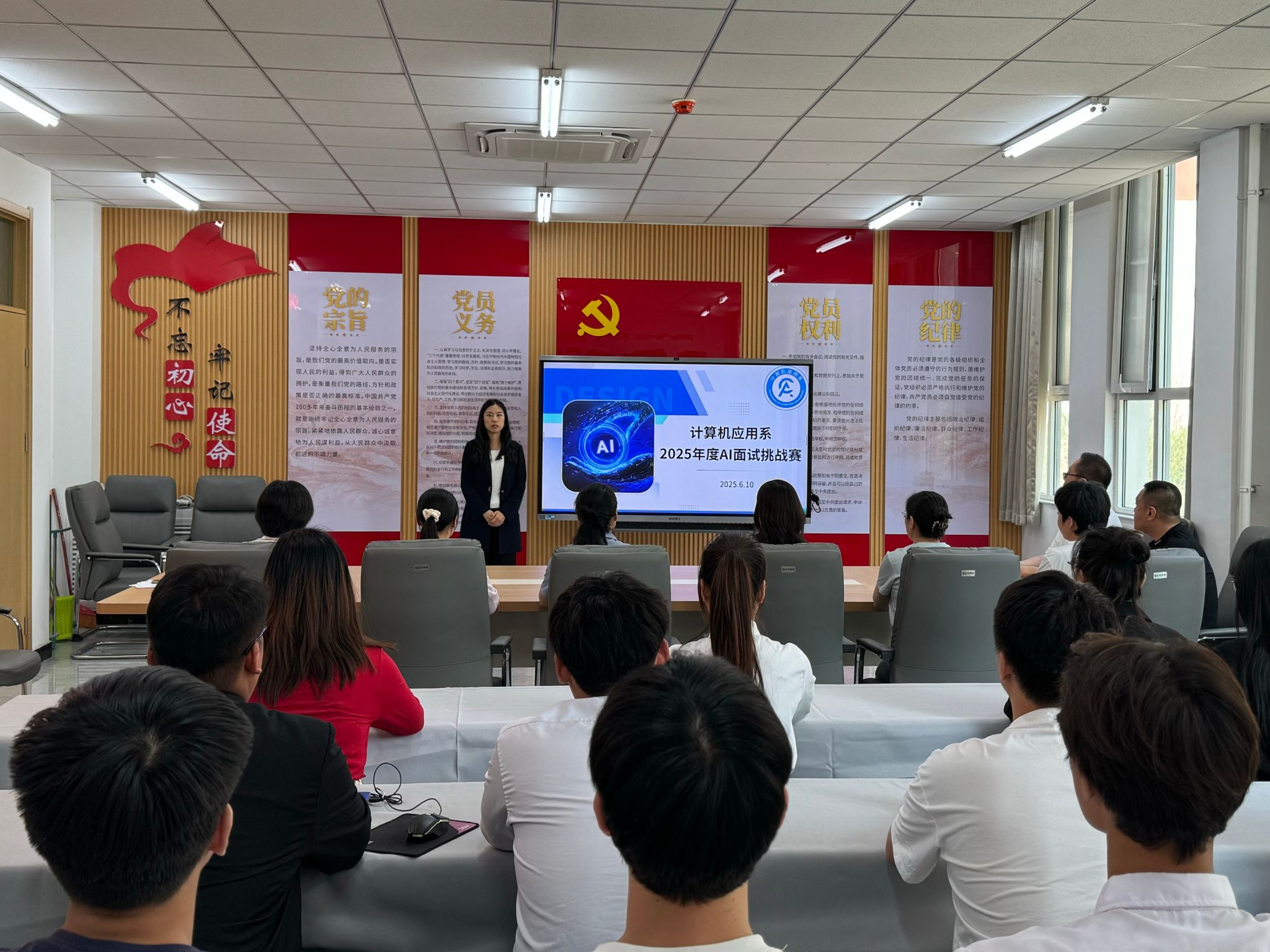 为帮助学生接轨AI时代求职场景,提升简历制作、面试应答等核心技能,6月10日下午,计算机应用系在系党员活动室举办AI模拟面试选拔赛。活动以“线上简历评审+线下AI实操与现场答辩”相结合的创新形式,为学生打造从“理论储备”到“实战应用”的能力跃迁平台。