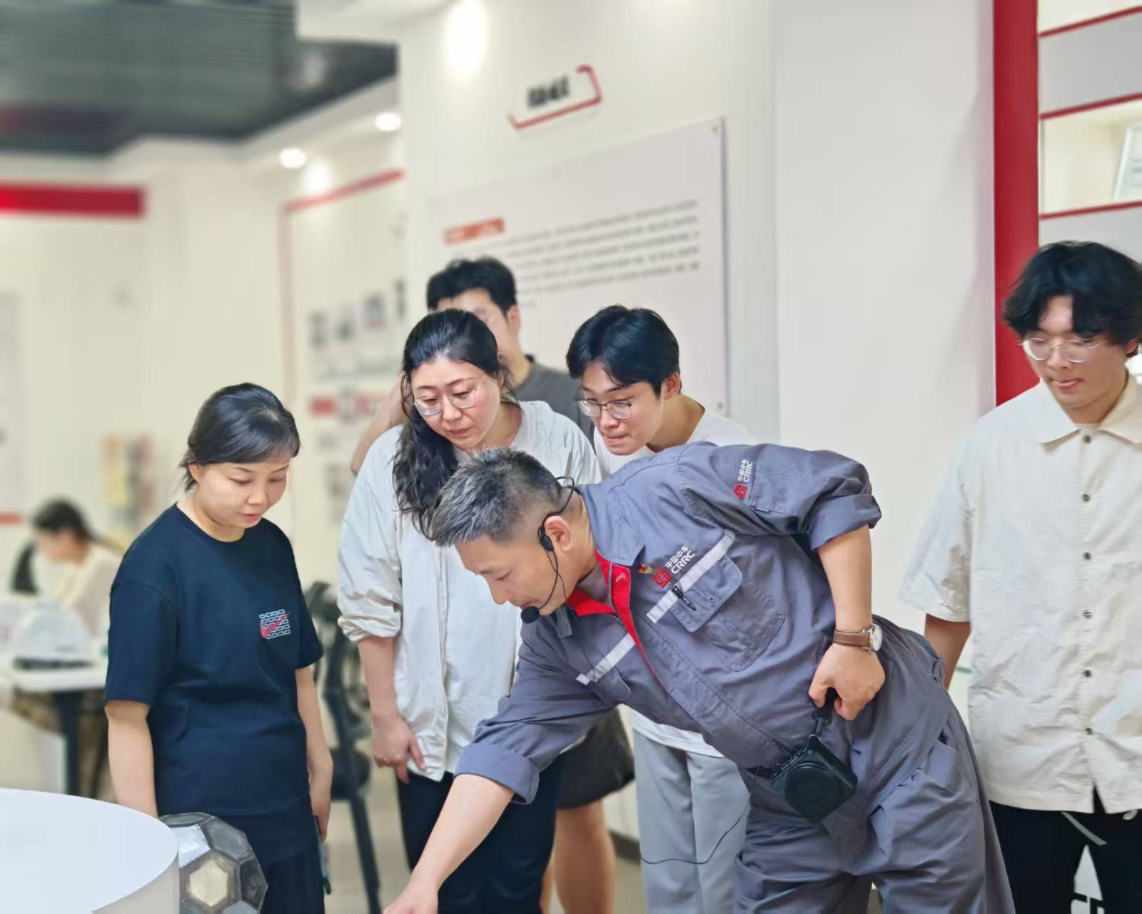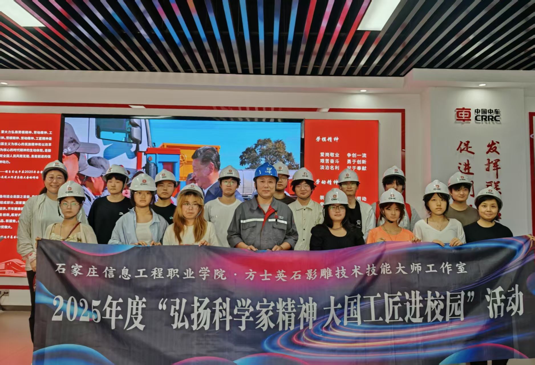 传承工匠精神,铸就大国重器。6月23日下午,由传媒艺术系方士英石影雕技术技能大师工作室举办的2025年度“弘扬科学家精神 大国工匠进校园”第五期活动来到中车石家庄车辆有限公司,与企业“技术能手”王勇老师一起,走进车间、厂房,倾听“劳模工匠”的成长历程。