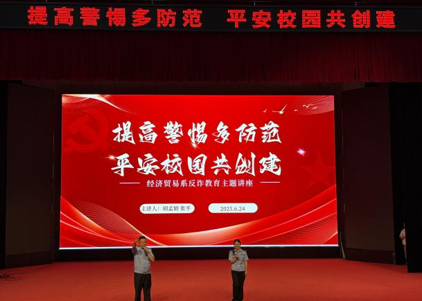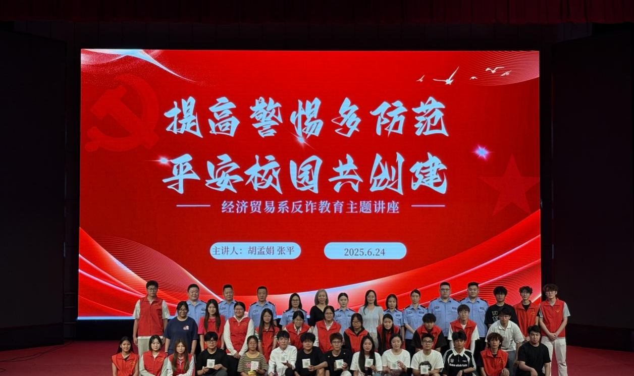 为深入推进“法治护航青春 共建平安校园” 法治宣传月活动,增强经济贸易系学生的反诈意识,筑牢校园安全防线,6月24日,经济贸易系联合藁城公安局举办以“提高警惕多防范 平安校园共创建”为主题的法治教育与反诈实践双结合的主题讲座。全系600余名同学参加。