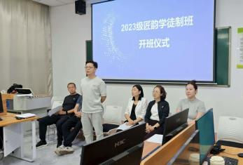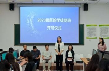 9月19日,beat365传媒艺术系与石家庄匠韵网络科技有限公司合作共建的“匠韵中国特色现代学徒制班”在知新10号楼105教室成功举行开班仪式。传媒艺术系书记张婷、主任袁立敏、副书记刘旭,匠韵网络科技有限公司副总经理赵川川、人事经理杨智芝、企业教师代表以及2023级学徒制班全体学生参加。