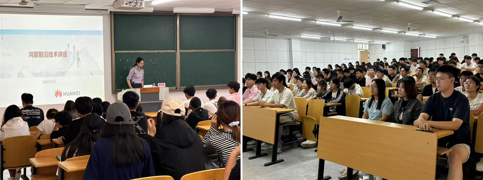 在“专家进校园”科普报告中,华为培训工程师走进校园,为师生带来鸿蒙前沿技术等讲座,激发了青年学生对科技安全的浓厚兴趣。