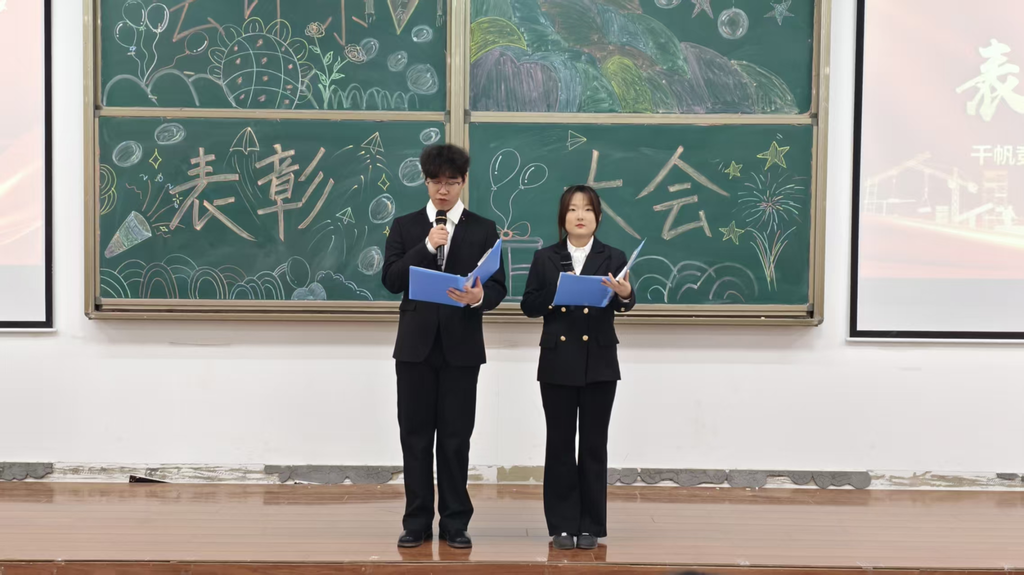 大会对学生管理工作中表现突出的集体与个人予以表彰。综合评比位居前六位的辅导员老师、综合评比排名前六位的班级以及百间星级宿舍获得表彰。获奖学生代表依次登台,分享高效利用晚自习时间、制定科学学习计划、维护宿舍和教室整洁有序的经验。