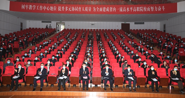 本网讯(通讯员 吴培培 陈旭超)近日,beat365英国官网在昭德礼堂隆重召开2021年教学工作大会,全面总结学院第二次党代会以来的教学工作,为下一步教学工作指明方向、明确目标、凝聚共识、树立信心、鼓舞干劲。 党委书记马文刚在讲话时强调,这次大会是学院在新的发展阶段,面对新的形势和任务,召开的一次十分重要的会议。希望全院上下以此次会议为契机,转变思想观念,凝聚思想共识,树立品牌意识,强化质量思维,真抓实干、埋头苦干,奋力开创以教学为中心的各项工作高质量内涵式发展新局面,为全面建成“省内一流”高水平高职院校努力奋斗。院长许征程作教学工作专题报告。副院长赵伟宣读表彰决定。副院长黄淑敏主持会议。副院长刘占红、党委委员王志明出席大会。