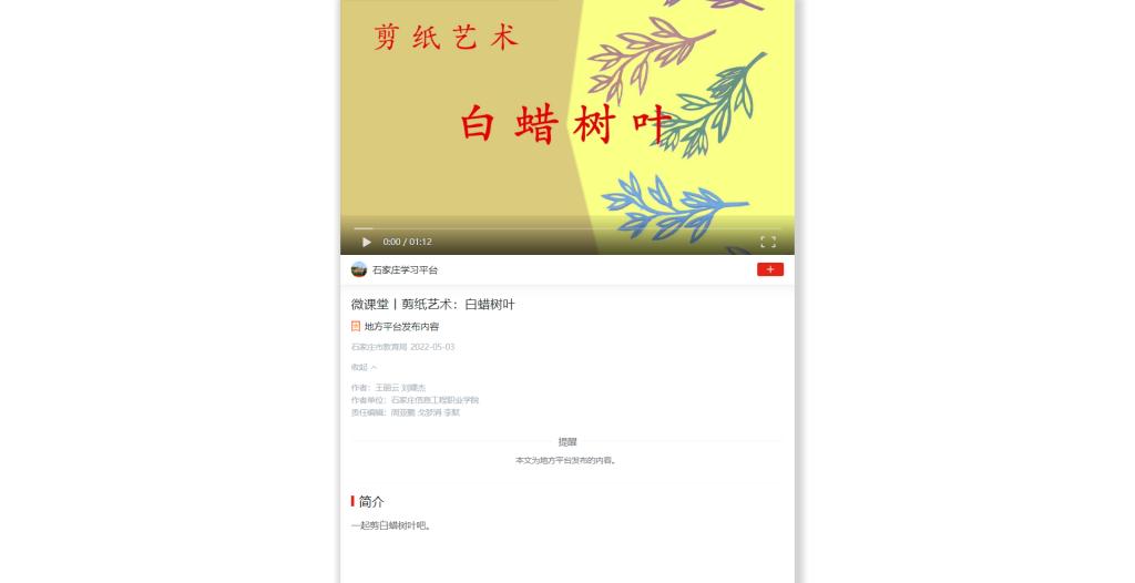 下一条:【学习强国】微课堂丨剪纸艺术:七彩树叶