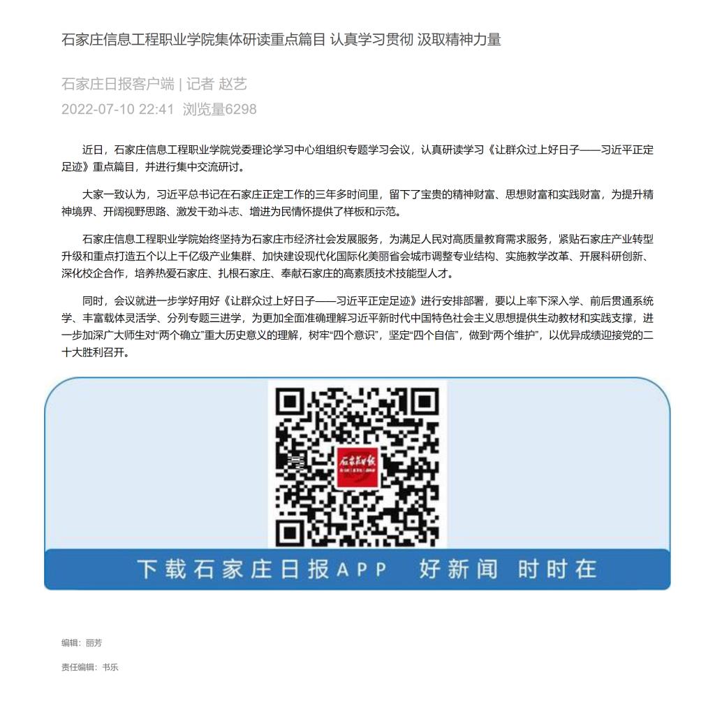 原文链接:石家庄信息工程职业学院集体研读重点篇目