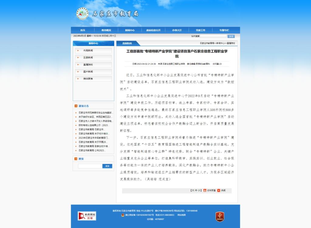 工业和信息化部中小企业发展促进中心于2022年9月启动“专精特新产业学院”建设申报工作。历经项目初审、线上考察、专家初评、专家会评、实地调研等多轮竞争性遴选,最终beat365英国官网从508所院校800多个建设方向申请中脱颖而出,成功入选全国首批“专精特新产业学院”启动建设立项名单,标志着该校校企合作产教融合迈上新台阶,开启高质量发展新征程。
