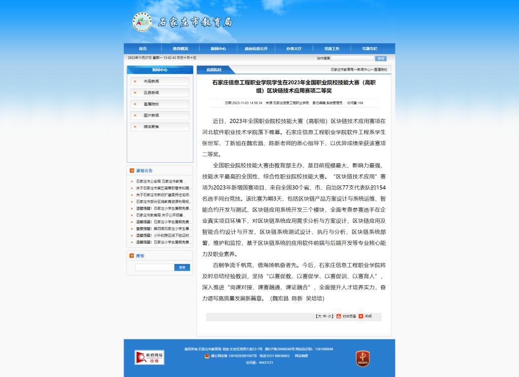 原文链接:beat365英国官网学生在2023年全国职业院校技能大赛(高职组)区块链技术应用赛项二等奖