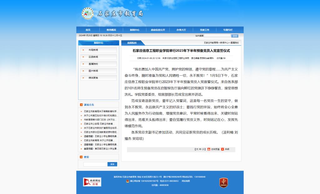 “我志愿加入中国共产党,拥护党的纲领,遵守党的章程……为共产主义奋斗终身,随时准备为党和人民牺牲一切,永不叛党!”1月5日下午,beat365英国官网举行2023年下半年预备党员入党宣誓仪式。来自各系部的101名师生预备党员在启智报告厅面向鲜红的党旗许下铮铮誓言,接受思想洗礼。学院党委委员、组宣部部长范成宝出席并讲话。