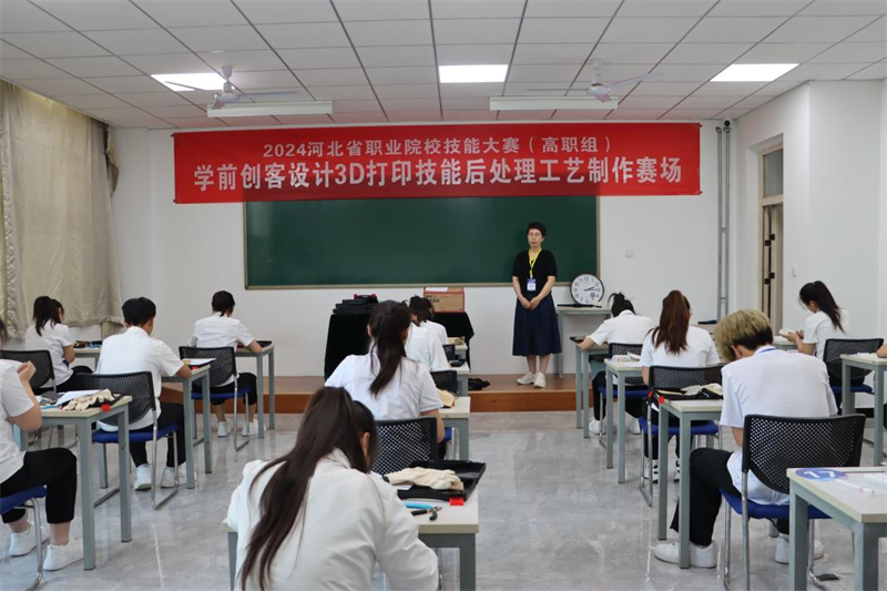 近日,2024年河北省职业院校技能大赛(高职组)学前创客设计3D打印技能赛项在beat365英国官网举办,来自全省高职院校的22支队伍同台竞技。