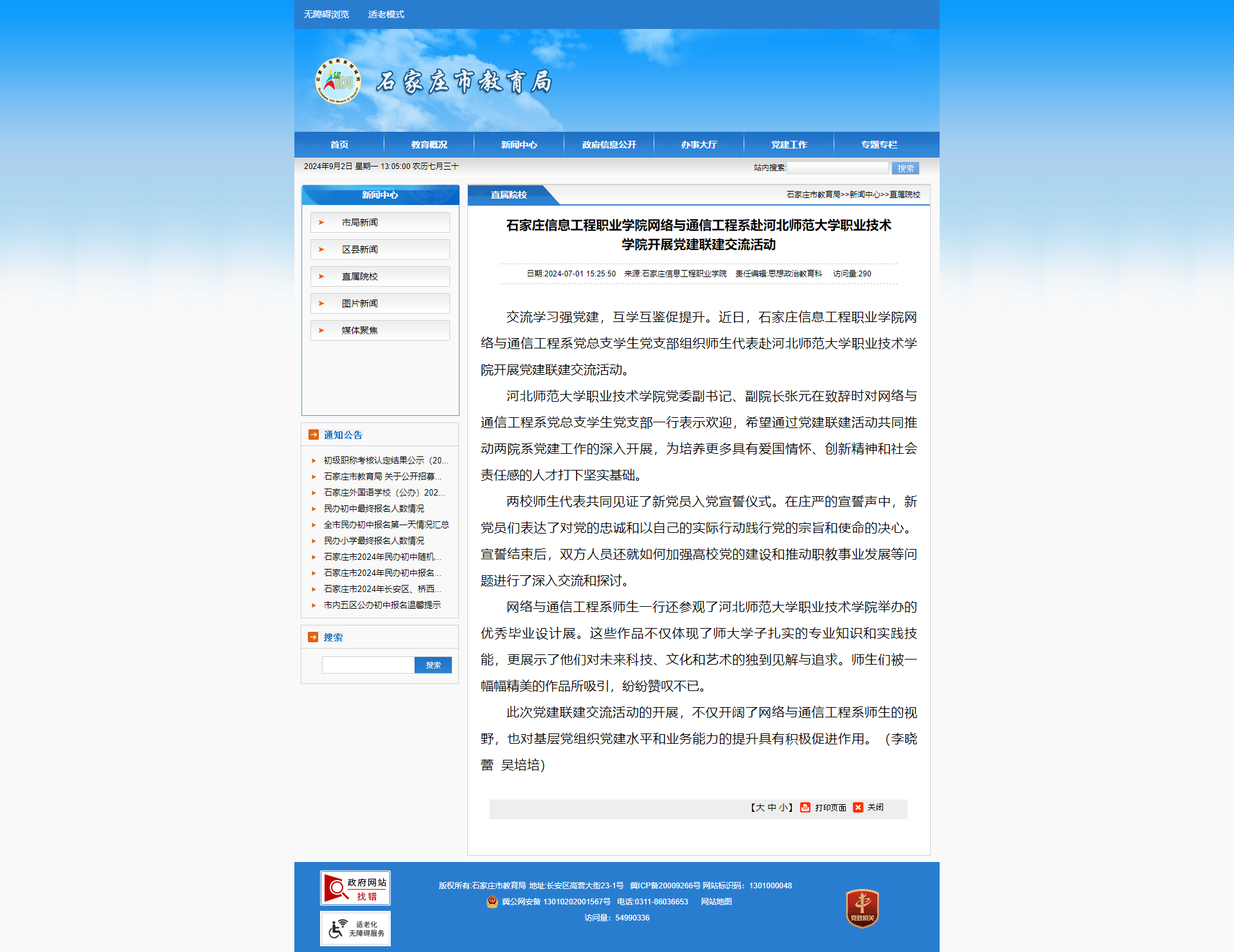原文链接:beat365英国官网网络与通信工程系赴河北师范大学职业技术学院开展党建联建交流活动